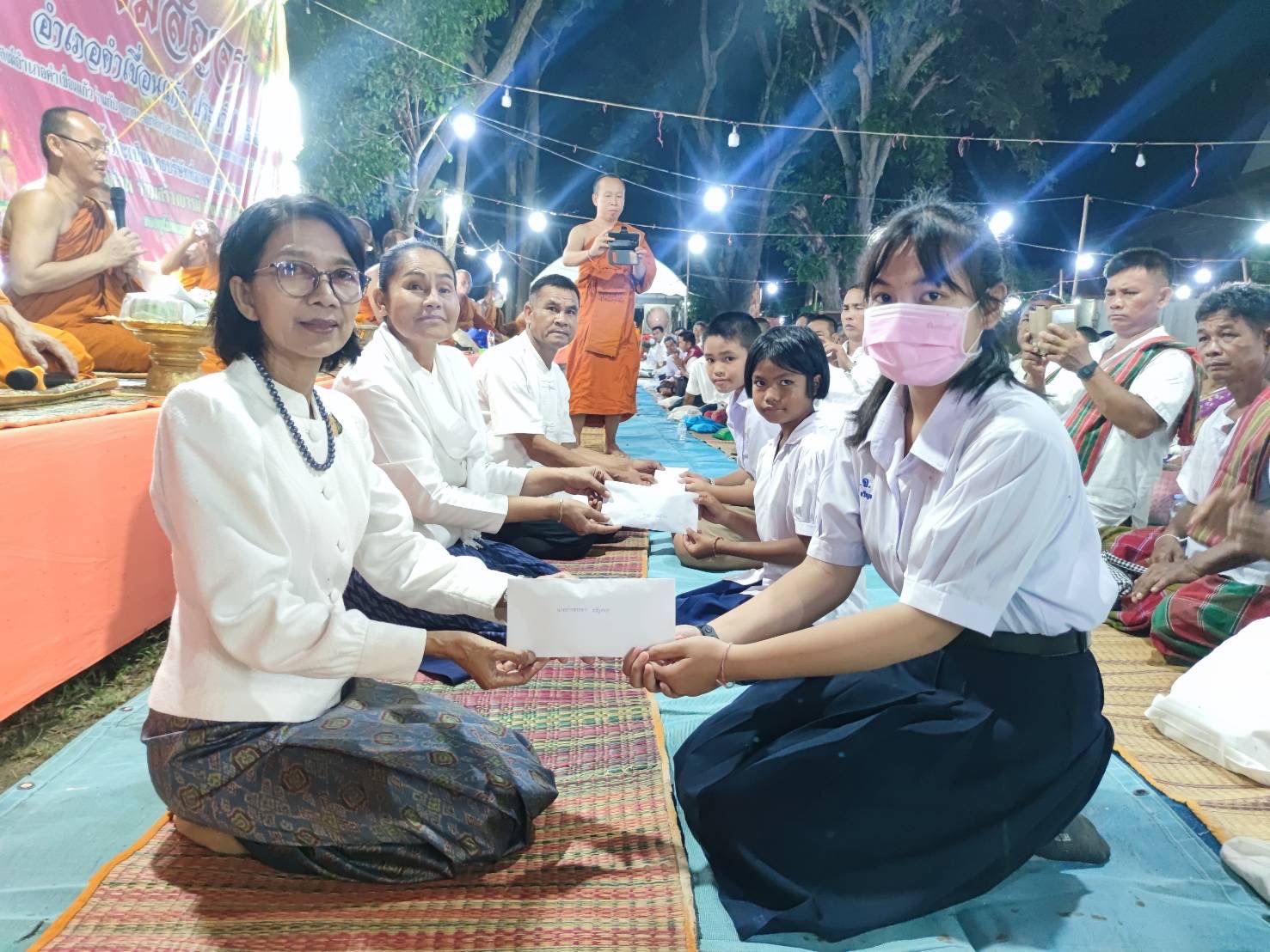 ในการนี้ นายอำเภอคำเขื่อนแก้ว นายกองค์การบริหารส่วนตำบลเหล่าไฮ และกำนันตำบลเหล่าไฮ ได้เป็นตัวแทนคณะสงฆ์อำเภอคำเขื่อนแก้ว มอบทุนการศึกษา จำนวน ๓ ทุน ๆ ละ ๑,๐๐๐ บาท รวม ๓,๐๐๐ บาท แก่เด็กนักเรียนในพื้นที่ด้วย