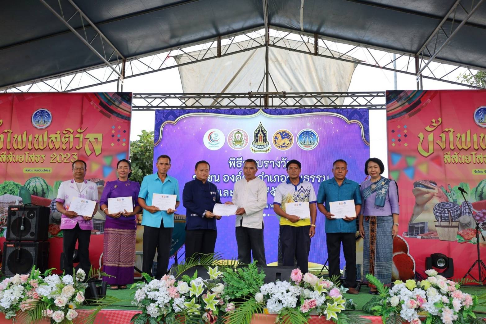 วันที่ 29 ส.ค. 2566 (15:06 น.)วันที่ ๒๕ สิงหาคม ๒๕๖๖ เวลา ๑๕.๓๐ น. นายวิรุจ วิชัยบุญ ผู้ว่าราชการจังหวัดยโสธร มอบหมายให้นายไกร เอี่ยมจุฬา รองผู้ว่าราชการจังหวัดยโสธร เป็นประธานพิธีเปิดงานตลาดนัดคุณธรรมจังหวัดยโสธร บูรณาการร่วมกับงาน "บั้งไฟเฟสติวัล สีสันยโสธร 2023" กิจกรรมส่งเสริมการท่องเที่ยวขยายผลจากงานประเพณีบุญบั้งไฟสู่การจำหน่ายสินค้าเกษตรอินทรีย์ ผลผลิตจากกลุ่มอาชีพต่างๆ และการแสดงศิลปะวัฒนธรรม และพิธีรับมอบเกียรติบัตรยกย่องเชิดชูเกียรติชุมชน องค์กร และอำเภอคุณธรรม ประจำปีงบประมาณ พ.ศ. ๒๕๖๖ และคนดีศรีจังหวัด ประจำปี ๒๕๖๖ ณ วิมานพญาแถน อำเภอเมืองยโสธร จังหวัดยโสธร