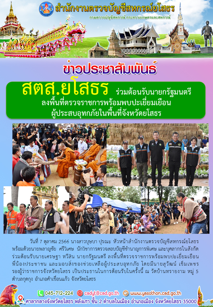 สตส.ยโสธร ร่วมต้อนรับนายกรัฐมนตรี ลงพื้นที่ตรวจราชการพร้อมพบปะเยี่ยมเยือนผู้ประสบอุทกภัยในพื้นที่จังหวัดยโสธร