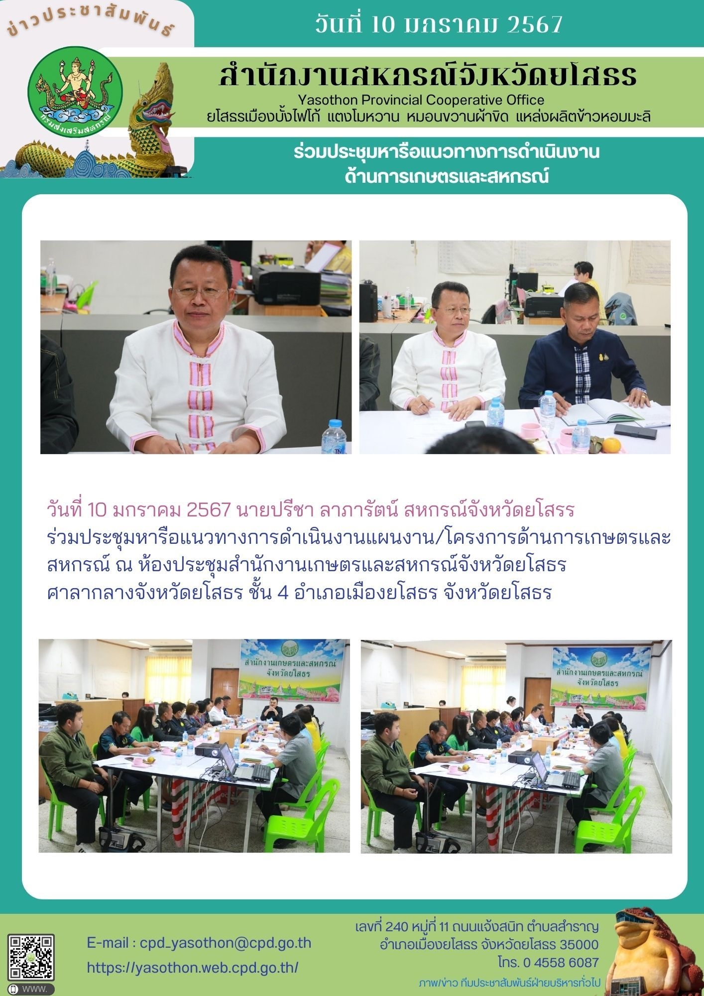นายปรีชา ลาภารัตน์ สหกรณ์จังหวัดยโสธร ร่วมประชุมหารือแนวทางการดำเนินงานแผนงาน/โครงการด้านการเกษตรและสหกรณ์ ณ ห้องประชุมสำนักงานเกษตรและสหกรณ์จังหวัดยโสธร