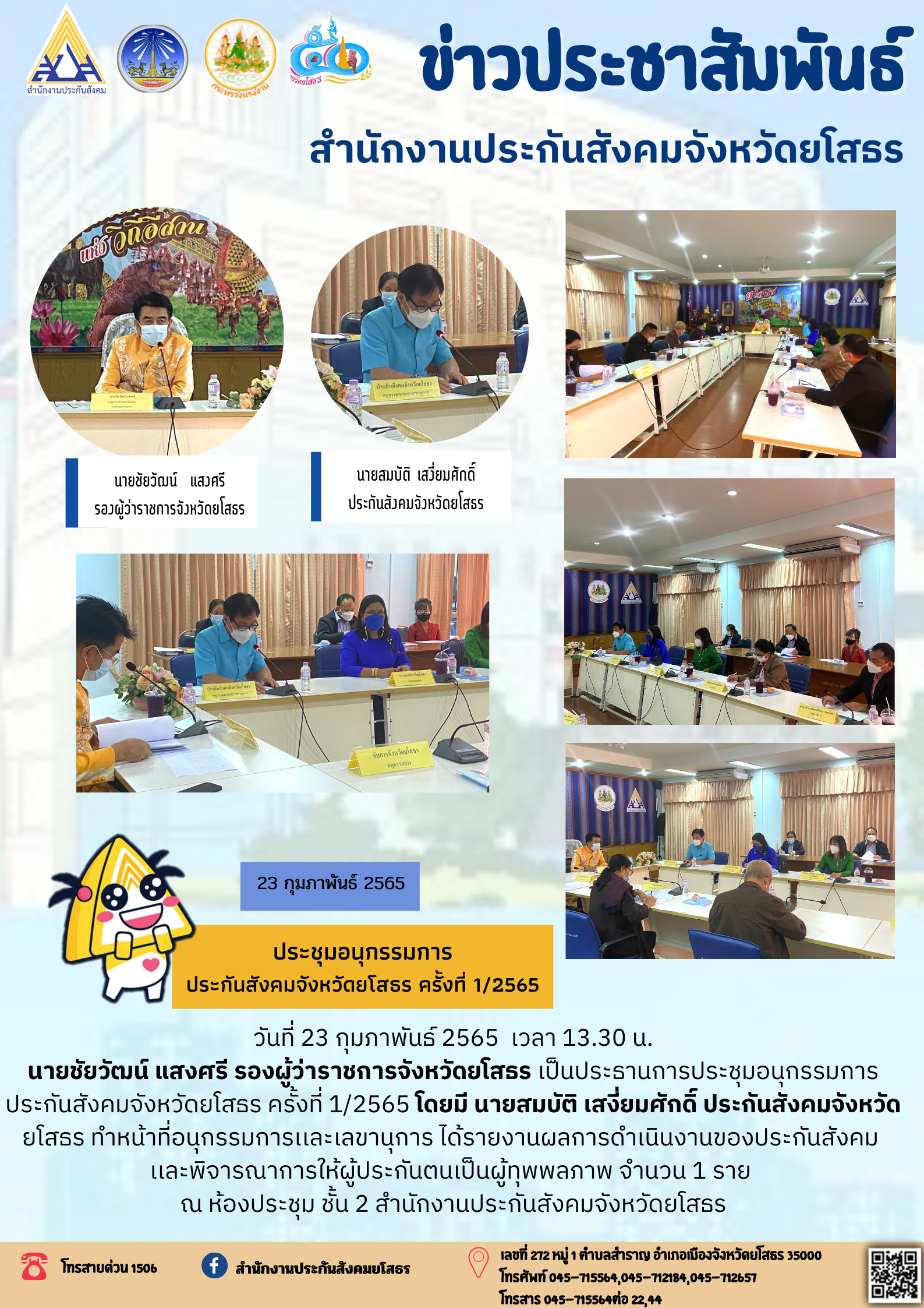 ประกันสังคมจังหวัดยโสธร ครั้งที่ 1/2565 โดยมี นายสมบัติ เสงี่ยมศักดิ์ ประกันสังคมจังหวัดยโสธร
