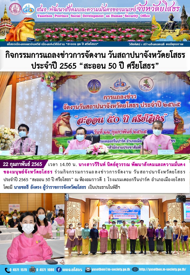 กิจกรรมการแถลงข่าวการจัดงาน วันสถาปนาจังหวัดยโสธร ประจำปี 2565 (22 กุมภาพันธ์ 2565)