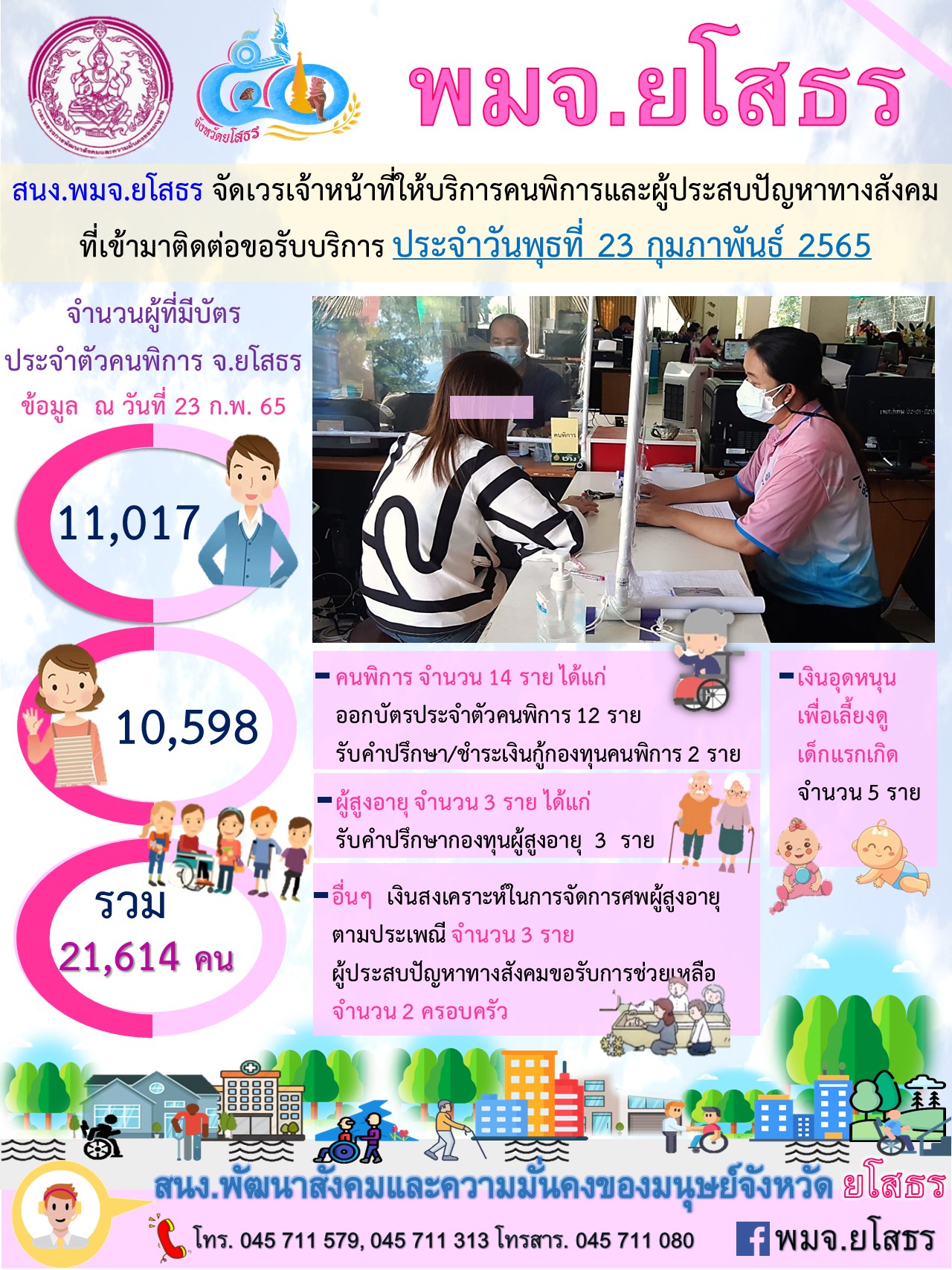 สนง.พมจ.ยโสธร จัดเวรเจ้าหน้าที่ให้บริการคนพิการและผู้ประสบปัญหาทางสังคม ที่เข้ามาติดต่อขอรับบริการ (23 กุมภาพันธ์ 2565)