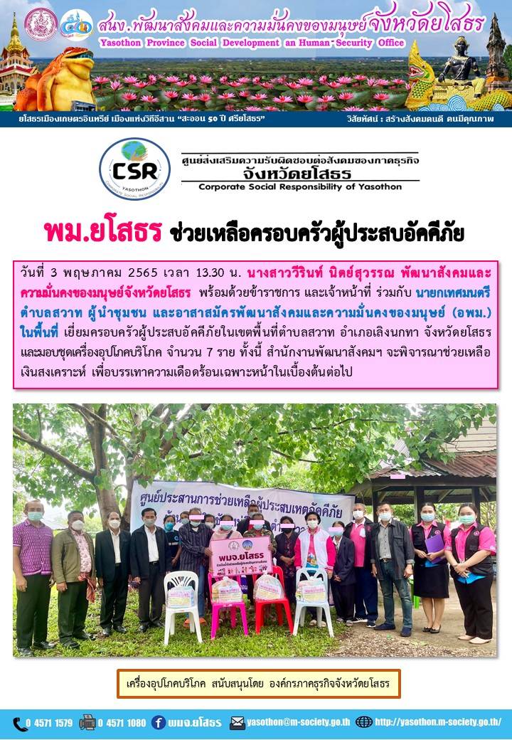 พม.ยโสธร ช่วยเหลือครอบครัวผู้ประสบอัคคีภัย (3 พฤษภาคม 2565)