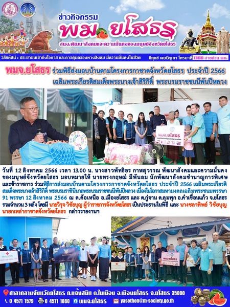 พมจ.ยโสธร ร่วมพิธีการส่งมอบบ้านตามโครงการกาชาดจังหวัดยโสธร ประจำปี 2566 (12 สิงหาคม 2566)