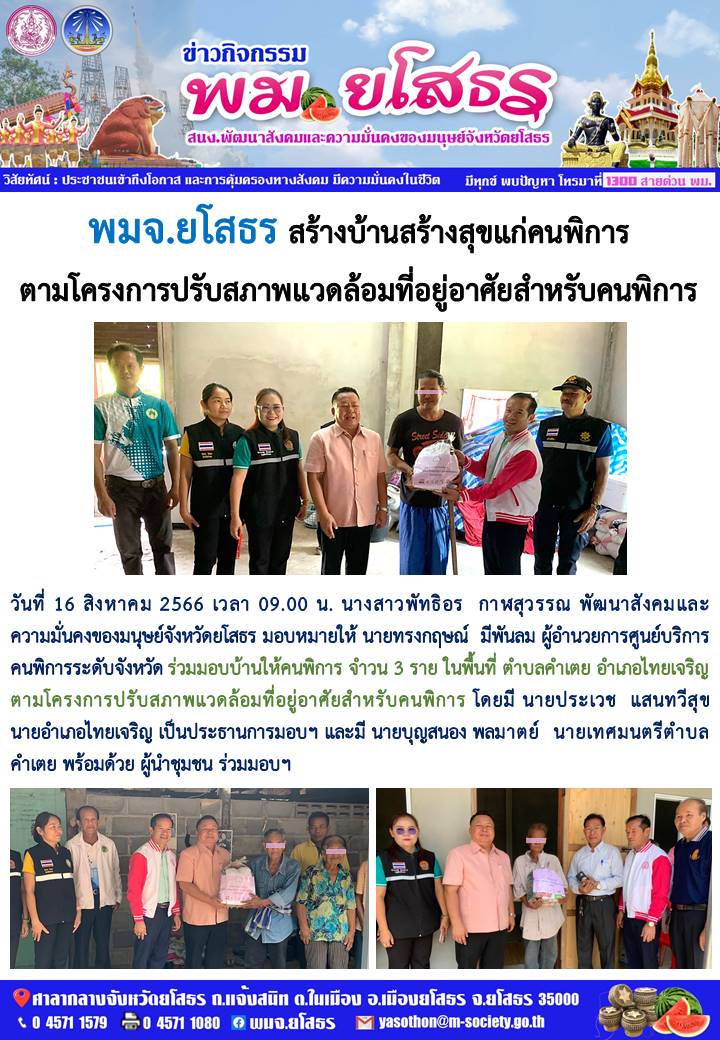 พมจ.ยโสธร สร้างบ้านสร้างสุขแก่คนพิการ ตามโครงการปรับสภาพแวดล้อมที่อยู่อาศัยสำหรับคนพิการ (16 สิงหาคม 2566)
