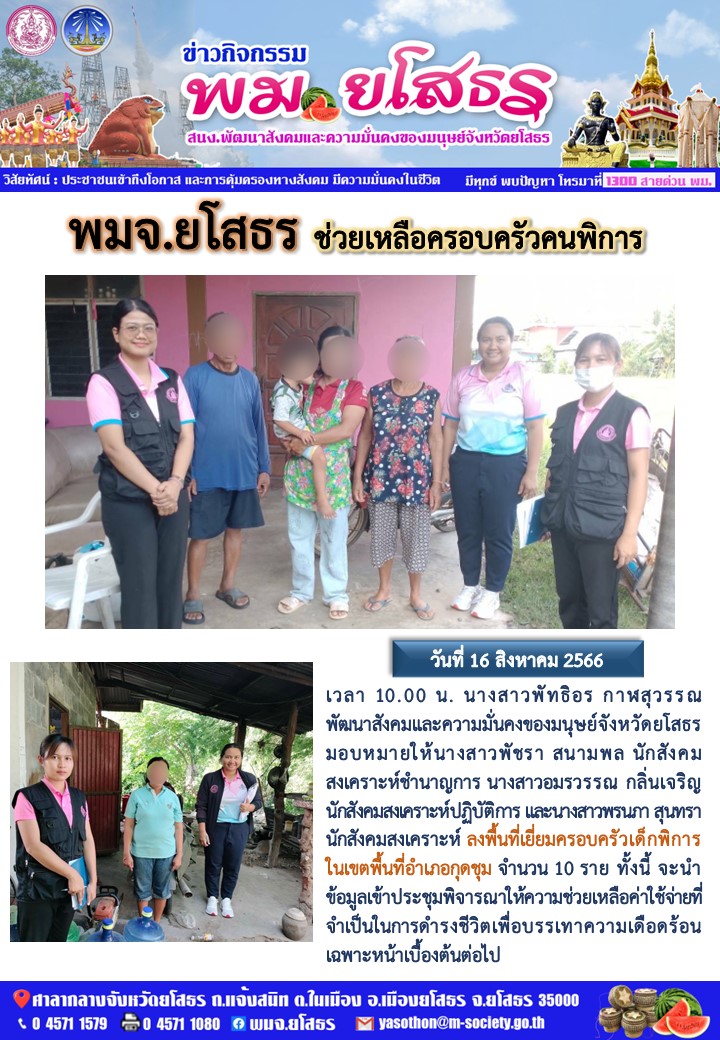 พมจ.ยโสธร ลงพื้นที่เยี่ยมครอบครัวเด็กพิการ (16 สิงหาคม 2566)