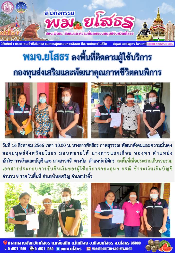 พมจ.ยโสธร ลงพื้นที่เพื่อประสานเก็บรวบรวมเอกสารประกอบการรับคืนเงินของผู้ใช้บริการกองทุนฯ กรณี ชำระเงินเกินบัญชี (16 สิงหาคม 2566)