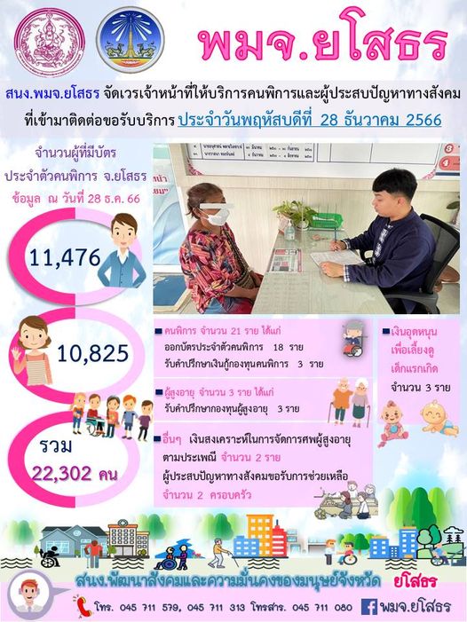 สนง.พมจ.ยโสธร จัดเวรเจ้าหน้าที่ให้บริการคนพิการและผู้ประสบปัญหาทางสังคม ที่เข้ามาติดต่อขอรับบริการ (28 ธันวาคม 2566)