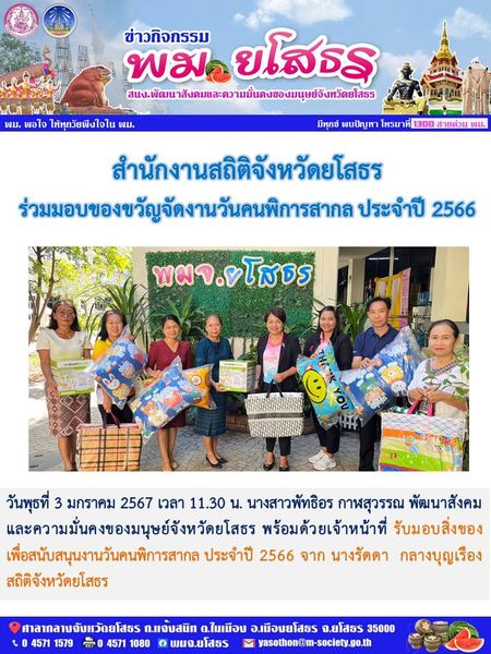 ผู้โพสต์ : [สำนักงานพัฒนาสังคมและความมั่นคงของมนุษย์จังหวัดยโสธร] ทั่วไป