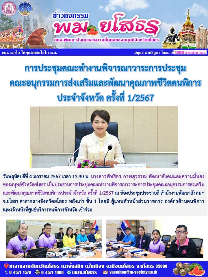 ประชุมคณะอนุกรรมการส่งเสริมและพัฒนาคุณภาพชีวิตคนพิการประจำจังหวัด ครั้งที่ 1/2567 (4 มกราคม 2567)