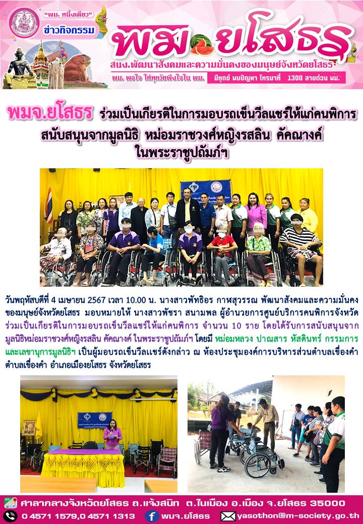 ร่วมเป็นเกียรติในการมอบรถเข็นวีลแชร์ให้แก่คนพิการ (4 เมษายน 2567)