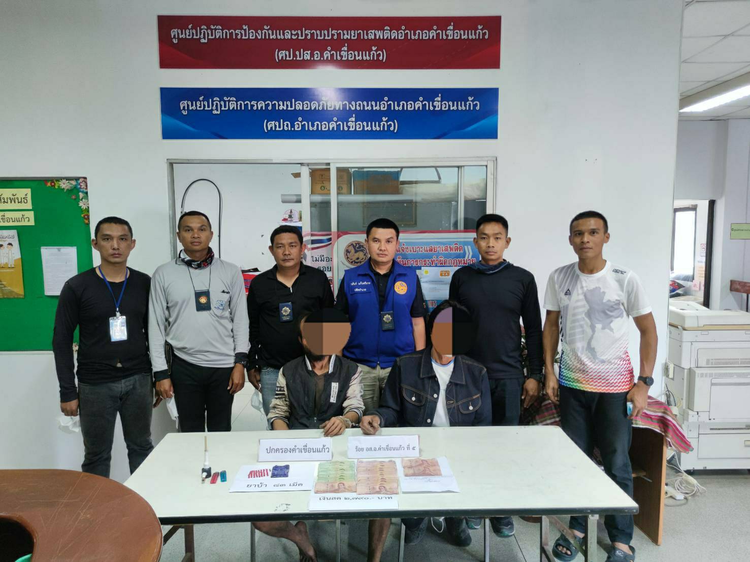 ๒) ขยายผลจากการสอบสวนผู้เสพทั้งสองราย ทำการล่อซื้อยาบ้า จากผู้ค้าที่ขายยาบ้าให้กับกลุ่มวัยรุ่นในหมู่บ้านและหมู่บ้านใกล้เคียง ๒ ราย พร้อมของกลางยาบ้า จำนวน ๘๖ เม็ด เงินสด ๒,๙๙๐ บาท จึงได้นำตัวส่งพนักงานสอบสวน สภ.คำเขื่อนแก้ว ดำเนิคดีตามกฎหมายต่อไป