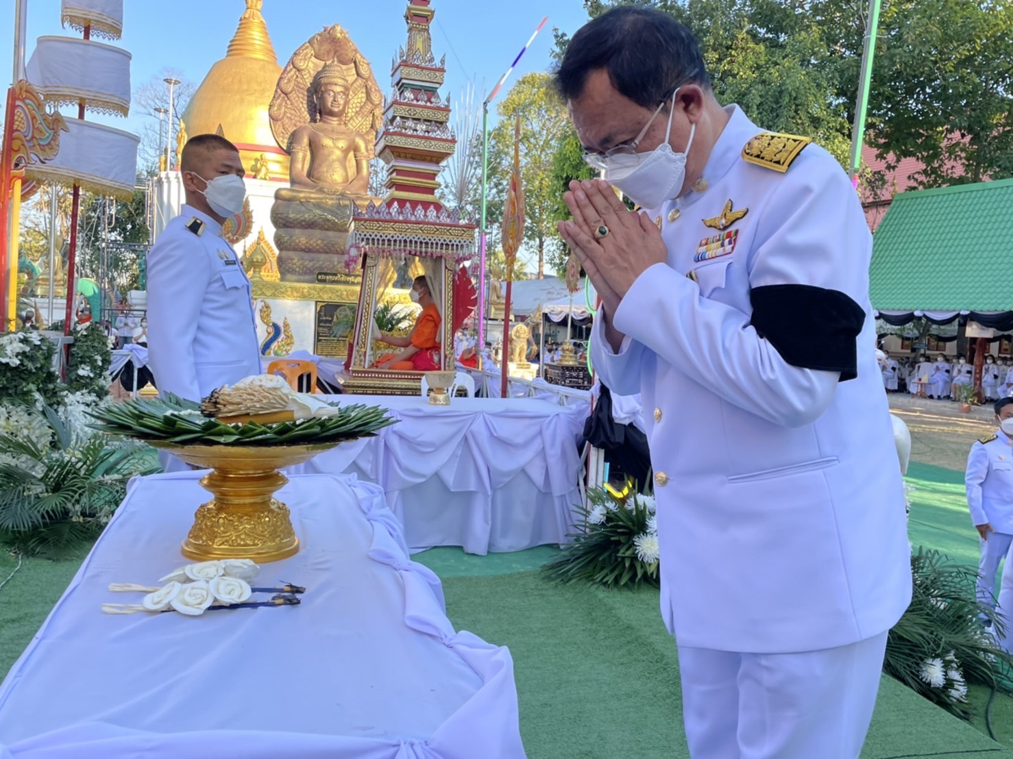 โดยมีพระเทพวิสุทธิโมลี ที่ปรึกษาเจ้าคณะภาค ๑๐ เป็นประธานฝ่ายสงฆ์ สมาชิกสภาผู้แทนราษฎรจังหวัดยโสธร เขต ๑ รองผู้ว่าราชการจังหวัดยโสธร ผู้บังคับการกรมทหารราบที่ ๑๖ หัวหน้าส่วนราชการ นายอำเภอเมืองยโสธร นายกองค์การบริหารส่วนจังหวัดยโสธร ข้าราชการ พี่น้องประชาชน ร่วมในพิธีในการนี้ นางยุพิน ภัทรกุลพงศ์ นายอำเภอคำเขื่อนแก้ว ได้เข้าร่วมพิธีในครั้งนี้ด้วย