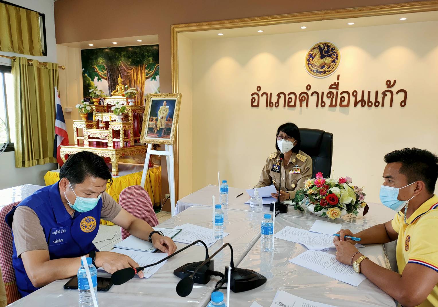 วันที่ 6 มี.ค. 2565 (15:38 น.)วันที่ 28 กุมภาพันธ์ 2565 เวลา 14.00 น. นางยุพิน ภัทรกุลพงศ์ นายอำเภอคำเขื่อนแก้ว เป็นประธานการประชุมจัดเตรียมงาน "วิสาขะน้อมรำลึก ตรึกในแก่นธรรม" อำเภอคำเขื่อนแก้ว จังหวัดยโสธร ซึ่งเป็น 1 ในโครงการ/กิจกรรม 50 ปี 50 ความดี จังหวัดยโสธร เนื่องในโอกาสการจัดงาน "วันสถาปนาจังหวัดยโสธร ครบ 50 ปี" ณ ห้องประชุมที่ว่าการอำเภอคำเขื่อนแก้ว (ชั้น 2) โดยมี ปลัดอำเภอหัวหน้ากลุ่มงานบริหารงานปกครอง พัฒนาการอำเภอคำเขื่อนแก้ว ผอ.ร.ร.อนุบาลแก้วปัญญาอุปถัมภ์ ผู้แทน ผอ.ร.ร.คำเขื่อนแก้วชนูปถัมภ์ ผู้แทน ผอ.กศน.อ.คำเขื่อนแก้ว ปลัดอำเภอ และเสมียนตราอำเภอ เข้าร่วมประชุมฯ ทั้งนี้ ได้ปฏิบัติตามมาตรการป้องกันและควบคุมโรคติดเชื้อไวรัสโคโรนา 2019 (โควิด-19) โดยเคร่งครัด