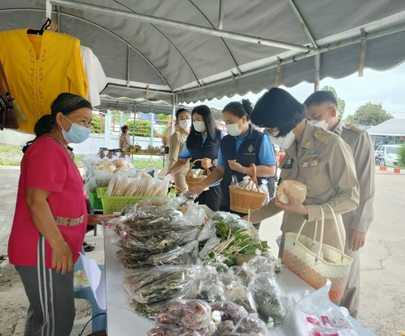 วันที่ 4 เม.ย. 2565 (14:04 น.)วันที่ 1 เมษายน 2565 เวลา 08.30 น. นางยุพิน ภัทรกุลพงศ์ นายอำเภอคำเขื่อนแก้ว/คณะทำงานแม่บ้านมหาดไทย/นายกกิ่งกาชาดอำเภอคำเขื่อนแก้ว พร้อมด้วย สมาชิกแม่บ้านมหาดไทยอำเภอคำเขื่อนแก้ว ร่วมกันอุดหนุนสินค้าเกษตรอินทรีย์และผลิตภัณฑ์โอทอป ในวันประชุมประจำเดือนกำนัน ผู้ใหญ่บ้าน ฯลฯ ณ หอประชุม ๑๐๐ ปี อำเภอคำเขื่อนแก้ว จังหวัดยโสธร โดยมี เกษตรกร/กลุ่มโอทอปร่วมจำหน่ายสินค้า ยอดจำหน่ายสินค้าเป็นเงินทั้งสิ้น 7,600 บาท