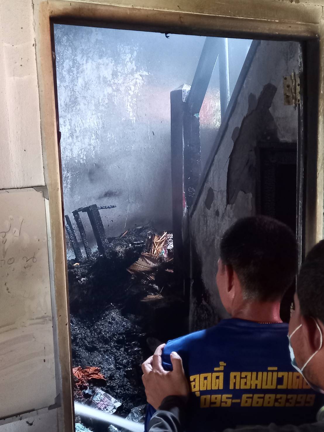 ออกตรวจสอบสถานที่เกิดเหตุไฟไหม้กุฏิเจ้าอาวาสวัดสงเปือย บ้านสงเปือย ต.สงเปือย อ.คำเขื่อนแก้ว