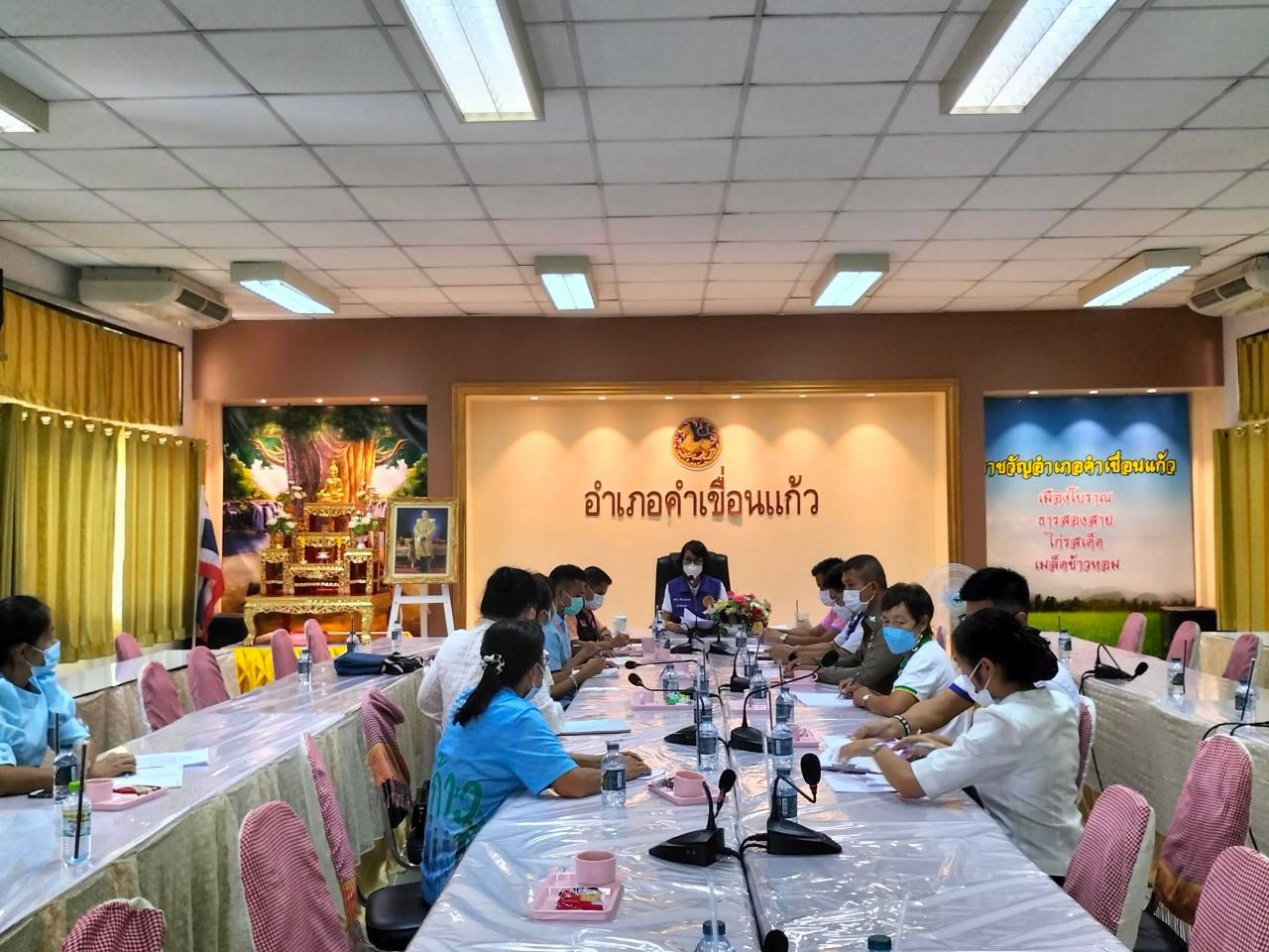 วันที่ 28 มิ.ย. 2565 (16:40 น.)วันที่ ๒๔ มิถุนายน ๒๕๖๕ เวลา ๑๑.๐๐ น.นางยุพิน ภัทรกุลพงศ์ นายอำเภอคำเขื่อนแก้ว เป็นประธานการประชุมสหวิชาชีพเพื่อหาแนวทางให้การช่วยเหลือเด็กซึ่งมารดาเลี้ยงดูบุตรไม่เหมาะสม โดยมีนายนุศาสตร์ ชาเสน หัวหน้าบ้านพักเด็กและครอบครัวจังหวัดยโสธร น.ส.วนิดา บุญปก นักสังคมสงเคราะห์ชำนาญการ สนง.พม.จ.ยโสธร นายชัยนเรศ ยอดแตง ปลัดอำเภอหัวหน้ากลุ่มงานบริหารงานปกครอง นายวสันต์ แก้วศรีนวม ปลัดอำเภอหัวหน้าฝ่ายความมั่นคง พ.ต.ต.กิตติ วิสีปัตน์ สวป. สภ.คำเขื่อนแก้ว นายดำรงค์ เปี่ยมอะโข รองนายกเทศมนตรีตำบลคำเขื่อนแก้ว น.ส.ดวงตา ราชอาษา ผอ.กองสาธารณสุขและสิ่งแวดล้อมเทศบาลตำบลคำเขื่อนแก้ว เจ้าหน้าที่รพ.คำเขื่อนแก้ว คณะครู รร.คำเขื่อนแก้วชนูปถัมภ์ ผู้ช่วยผู้ใหญ่บ้าน ม.๒ ต.ลุมพุก เข้าร่วมประชุม และลงพื้นที่ประเมินครอบครัว น.ส.บุญธง ลีลาศ ซึ่งมีบุตร ๔ คน ดังนี้