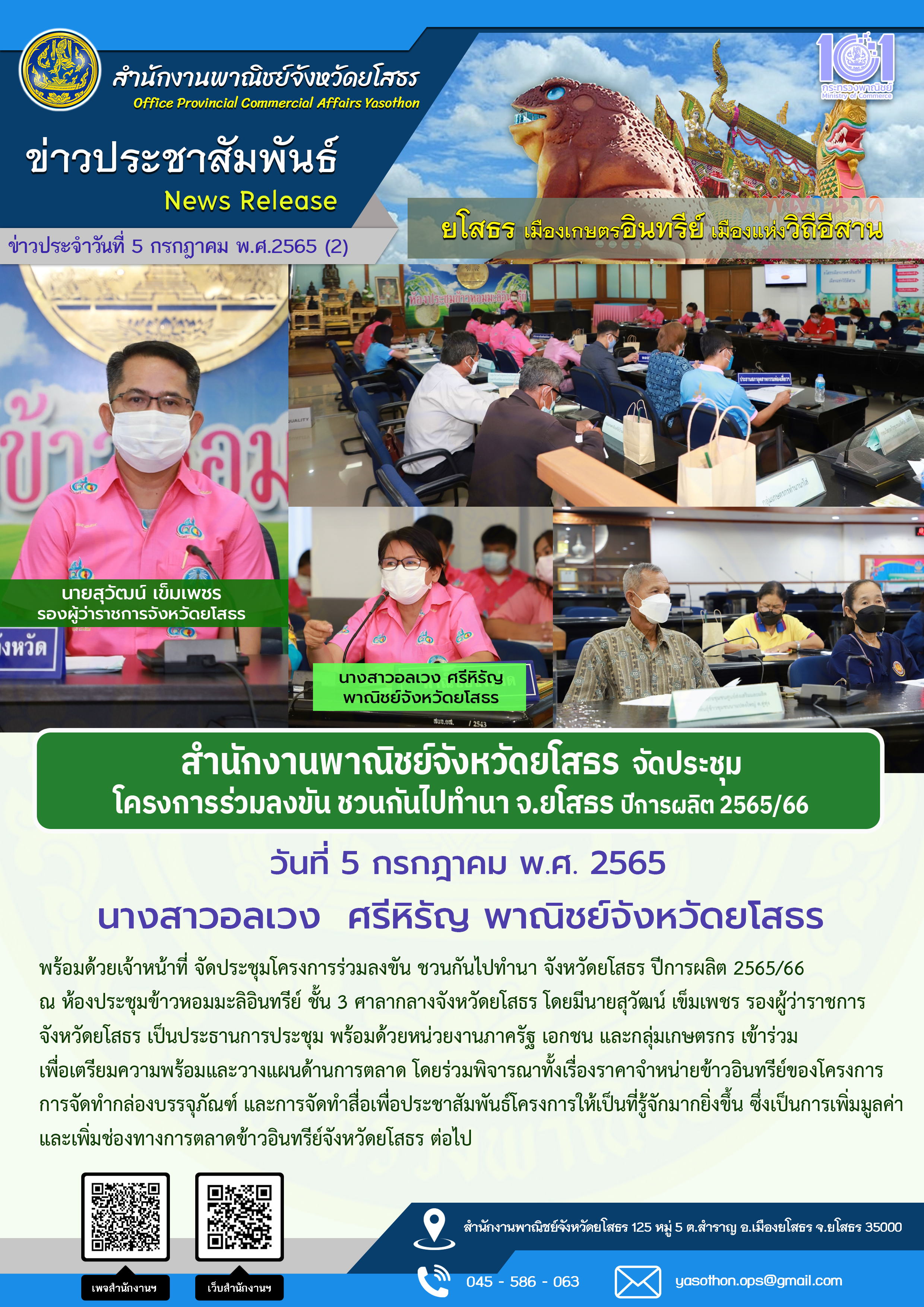 สนง.พาณิชย์จังหวัดยโสธร จัดประชุมโครงการร่วมลงขัน ชวนกันไปทำนา จังหวัดยโสธร ปีการผลิต 2565/66