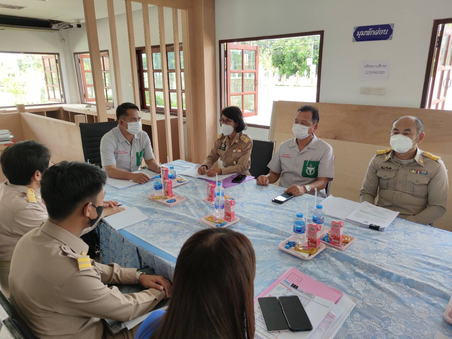 โดยมีคณะกรรมการตรวจการจ้าง ประกอบด้วย นางยุพิน ภัทรกุลพงศ์ นายอำเภอคำเขื่อนแก้ว โยธาธิการและผังเมืองจังหวัดยโสธร รองผอ.กศน.จังหวัดยโสธร ผอ.กศน.อ.คำเขื่อนแก้ว ผอ.กศน.อ.ค้อวัง ครู กศน.ตำบล และผู้ควบคุมงาน รายงานความคืบหน้าและติดตามการดำเนินงาน ในครั้งนี้
