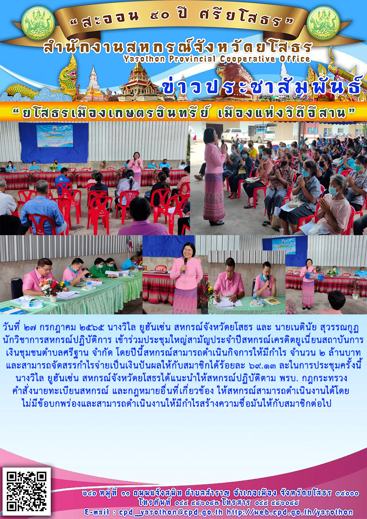 ผู้โพสต์ : [สำนักงานสหกรณ์จังหวัดยโสธร] ทั่วไป