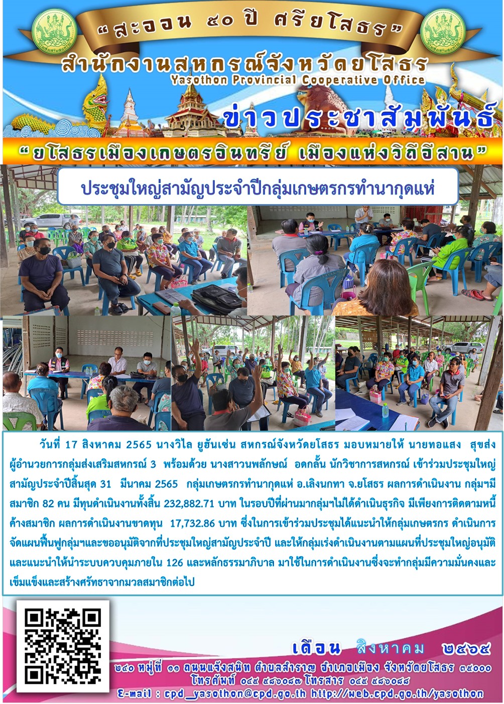ผู้โพสต์ : [สำนักงานสหกรณ์จังหวัดยโสธร] ทั่วไป