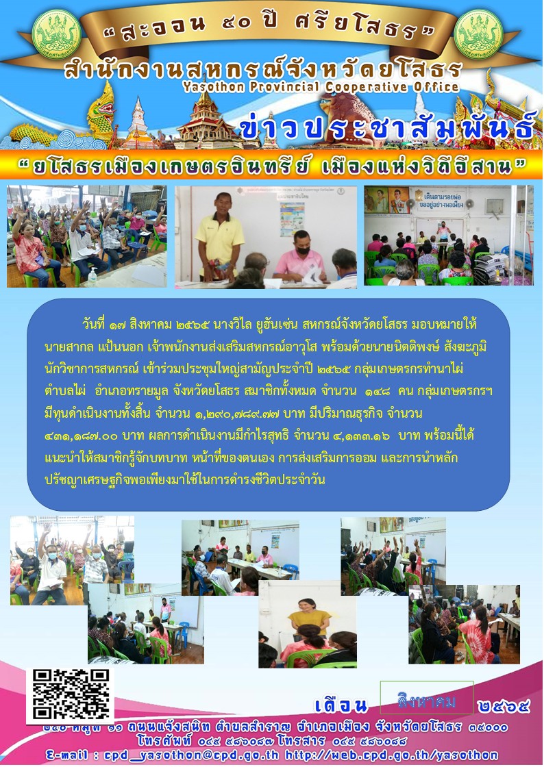 ผู้โพสต์ : [สำนักงานสหกรณ์จังหวัดยโสธร] ทั่วไป