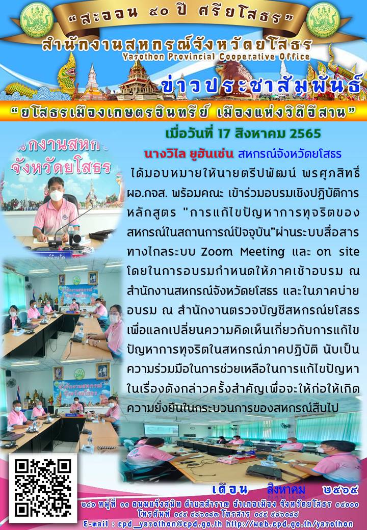 ผู้โพสต์ : [สำนักงานสหกรณ์จังหวัดยโสธร] ทั่วไป