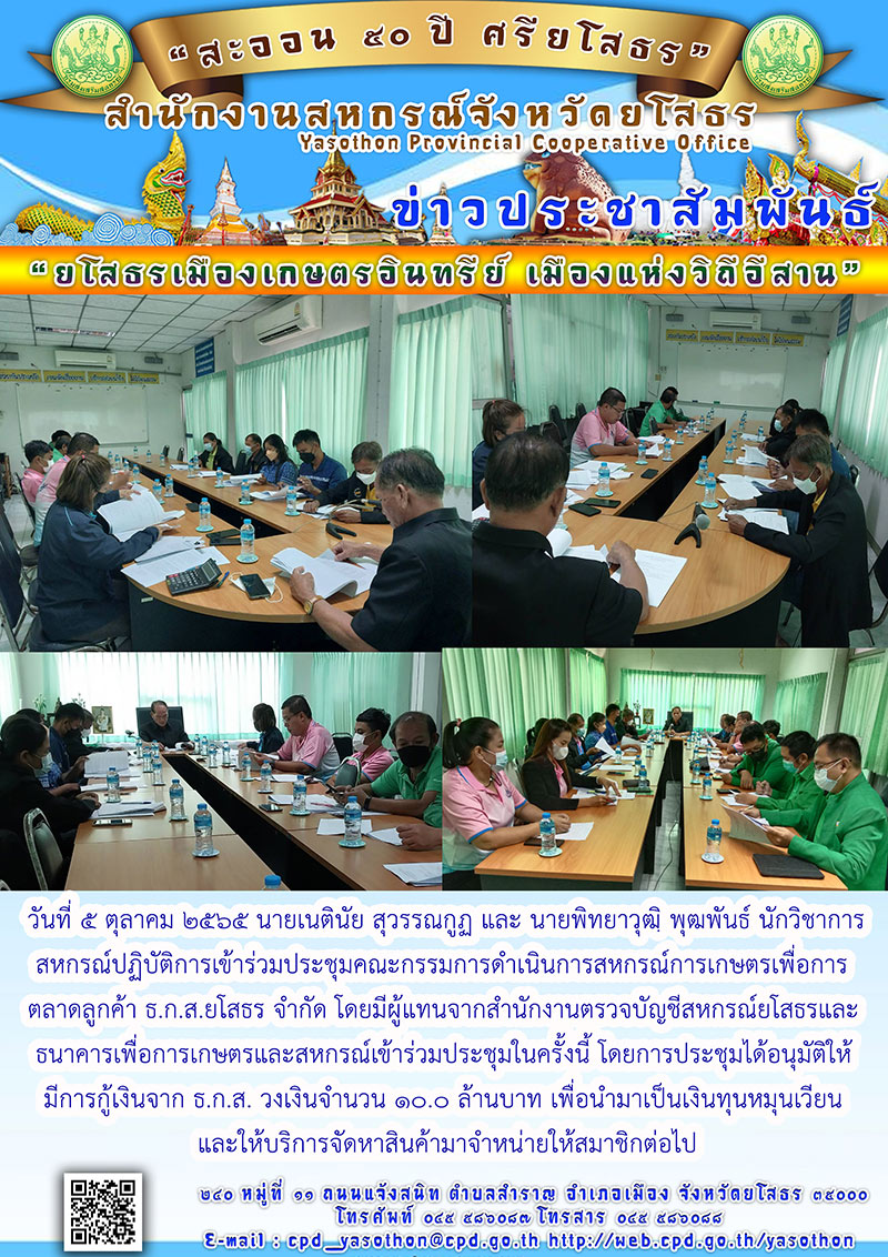 ผู้โพสต์ : [สำนักงานสหกรณ์จังหวัดยโสธร] ทั่วไป