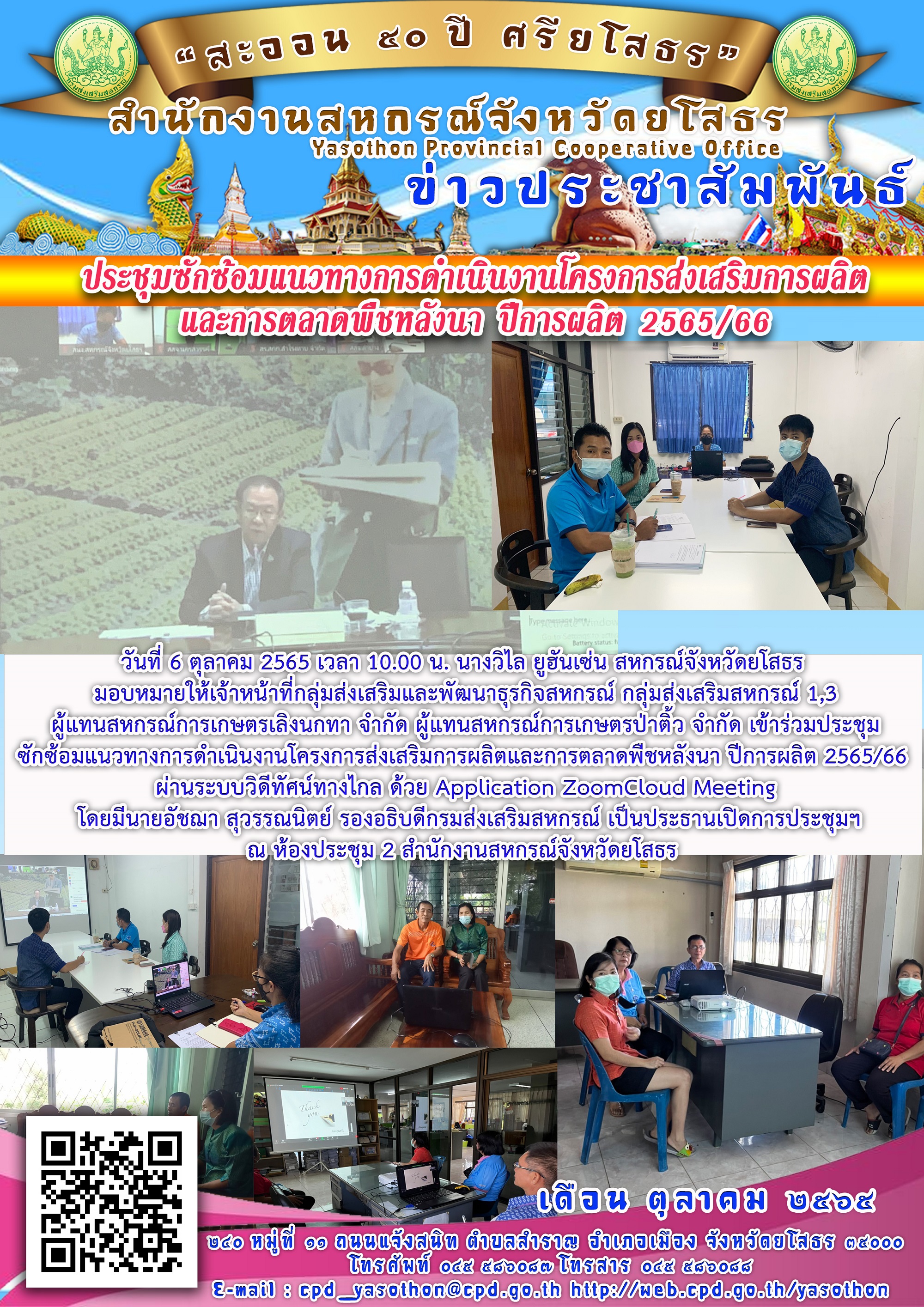 เจ้าหน้าที่สำนักงานสหกรณ์จังหวัดยโสธร เข้าร่วมประชุมซักซ้อมแนวทางการดำเนินงานโครงการส่งเสริมการผลิตและการตลาดพืชหลังนา ปีการผลิต2565/66 ผ่านระบบวีดีทัศน์ทางไกล ด้วย Application ZoomCloud Meeting