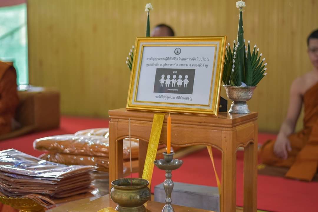 วันที่ 17 ต.ค. 2565 (09:37 น.)วันที่ 8 ตุลาคม 2565 เวลา 17.15 น. พระครูเมธีธรรมบัณฑิต เจ้าคณะอำเภอคำเขื่อนแก้ว นำคณะพระภิกษุสงฆ์ สามเณร ทำพิธีปฏิบัติธรรม สวดมนต์ บำเพ็ญบุญ แด่ดวงวิญญาณผู้จากไป จากเหตุการณ์ 6 ตุลาคม 2565 ศูนย์พัฒนาเด็กเล็กตำบลอุทัยสวรรค์ อำเภอนากลาง จังหวัดหนองบัวลำภู