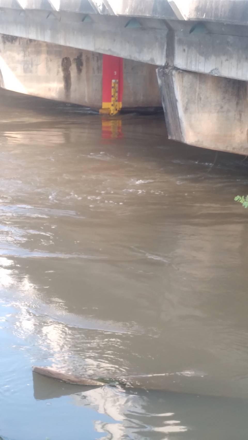 ๒) จุดสถานีสูบน้ำบ้านทรายงาม บ้านทรายงาม หมู่ที่ ๕ ตำบลกุดกุง ระดับน้ำลดลง ๐ ซม. (เทียบระดับน้ำเมื่อวาน) ต่ำกว่าจุดวิกฤติ ๔ ซม. น้ำล้นตลิ่ง (จุดที่ต่ำกว่าจุดวัดระดับน้ำ)