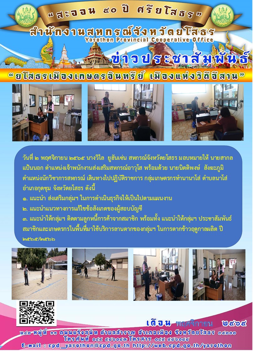 ผู้โพสต์ : [สำนักงานสหกรณ์จังหวัดยโสธร] ทั่วไป