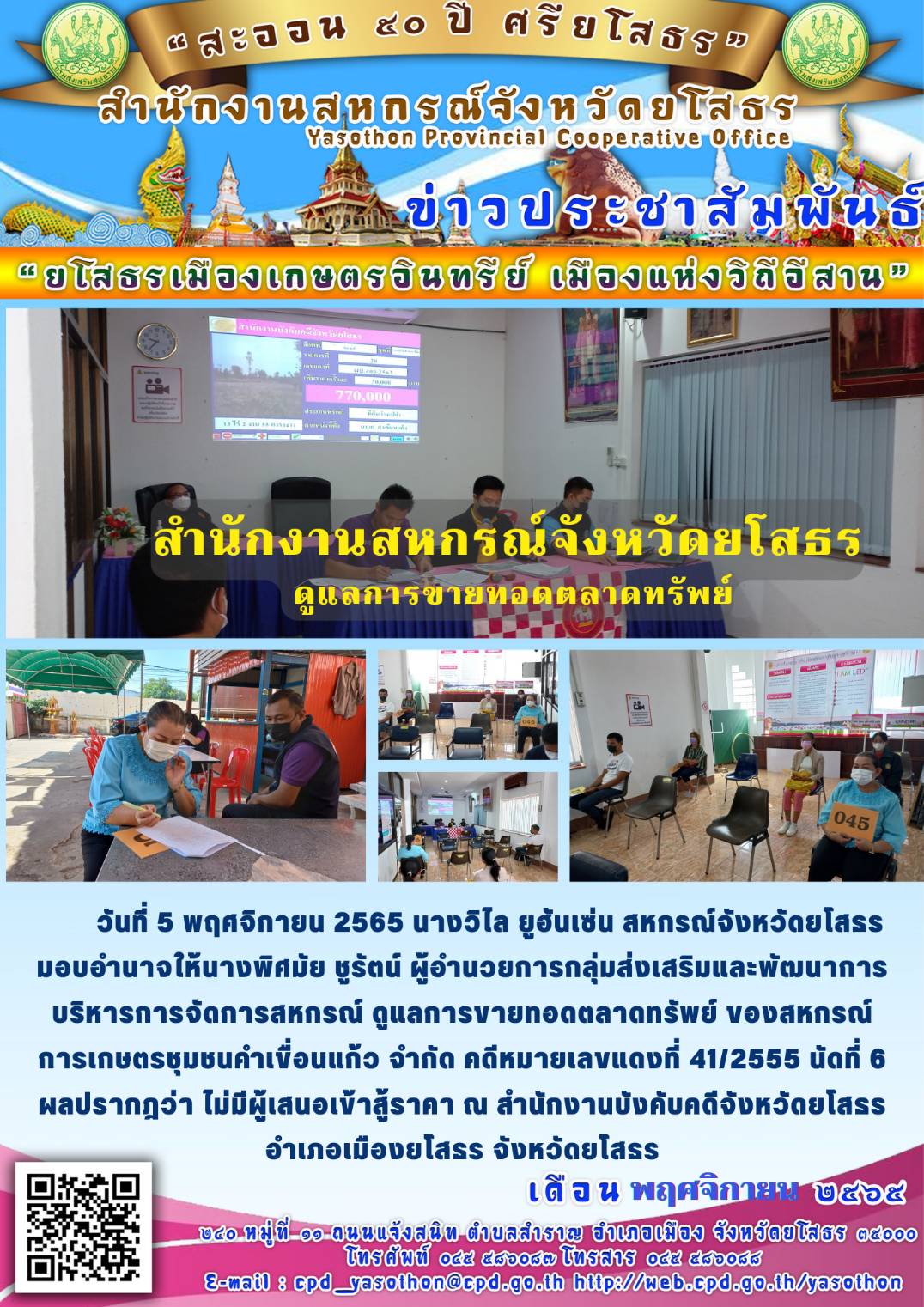 เจ้าหน้าที่สำนักงานสหกรณ์จังหวัดยโสธร เข้าดูแลการขายทอดตลาดทรัพย์ ของสหกรณ์การเกษตรชุมชนคำเขื่อนแก้ว จำกัด