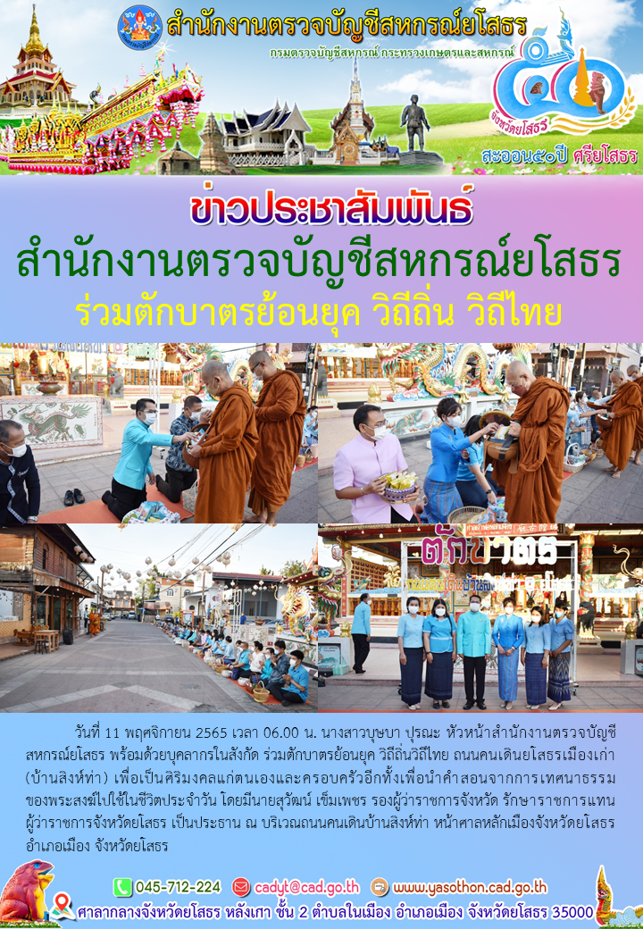 สำนักงานตรวจบัญชีสหกรณ์ยโสธร ร่วมตักบาตรย้อนยุค วิถีถิ่น วิถีไทย ณ ถนนคนเดินบ้านสิงห์ท่า