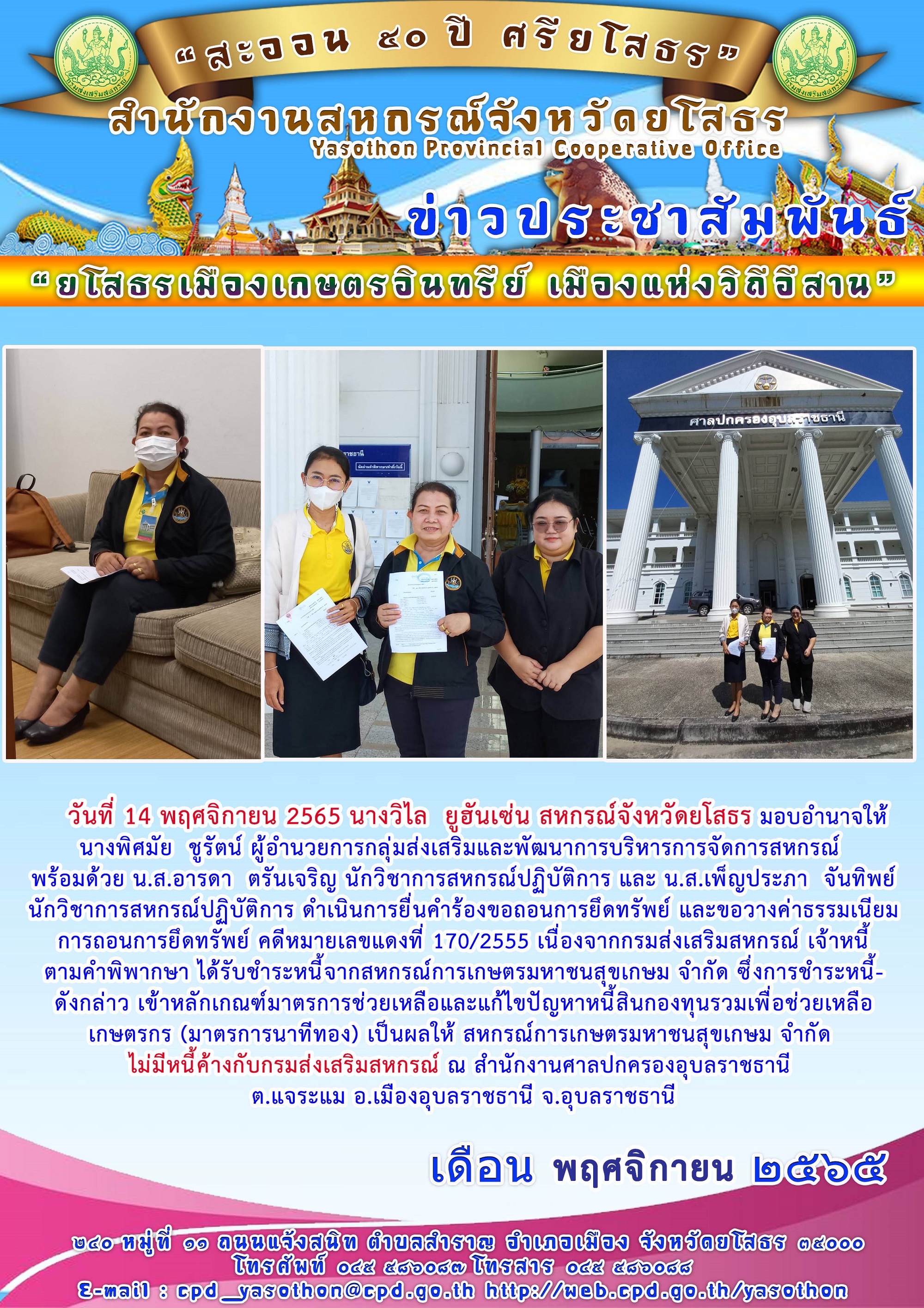 ผู้โพสต์ : [สำนักงานสหกรณ์จังหวัดยโสธร] ทั่วไป