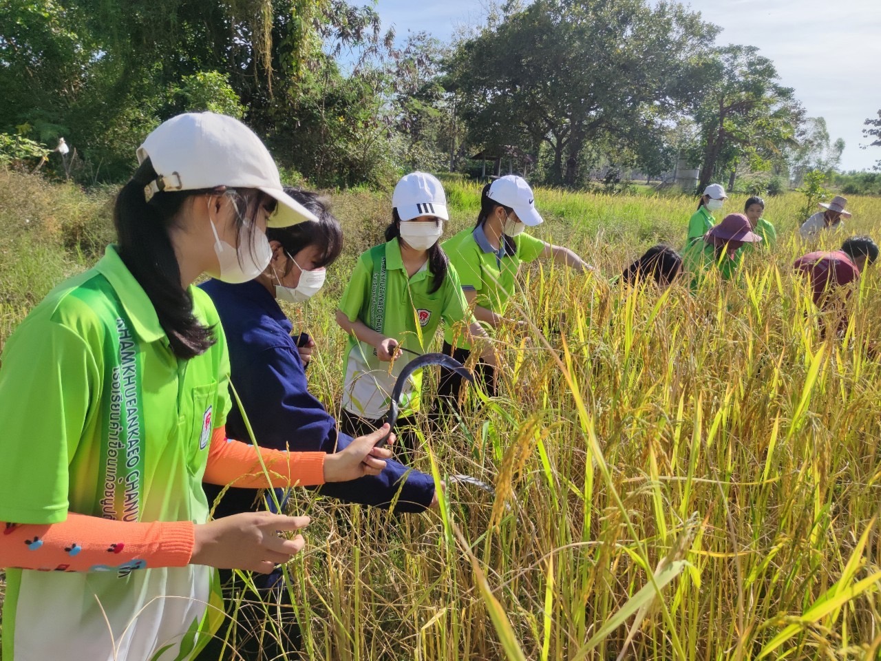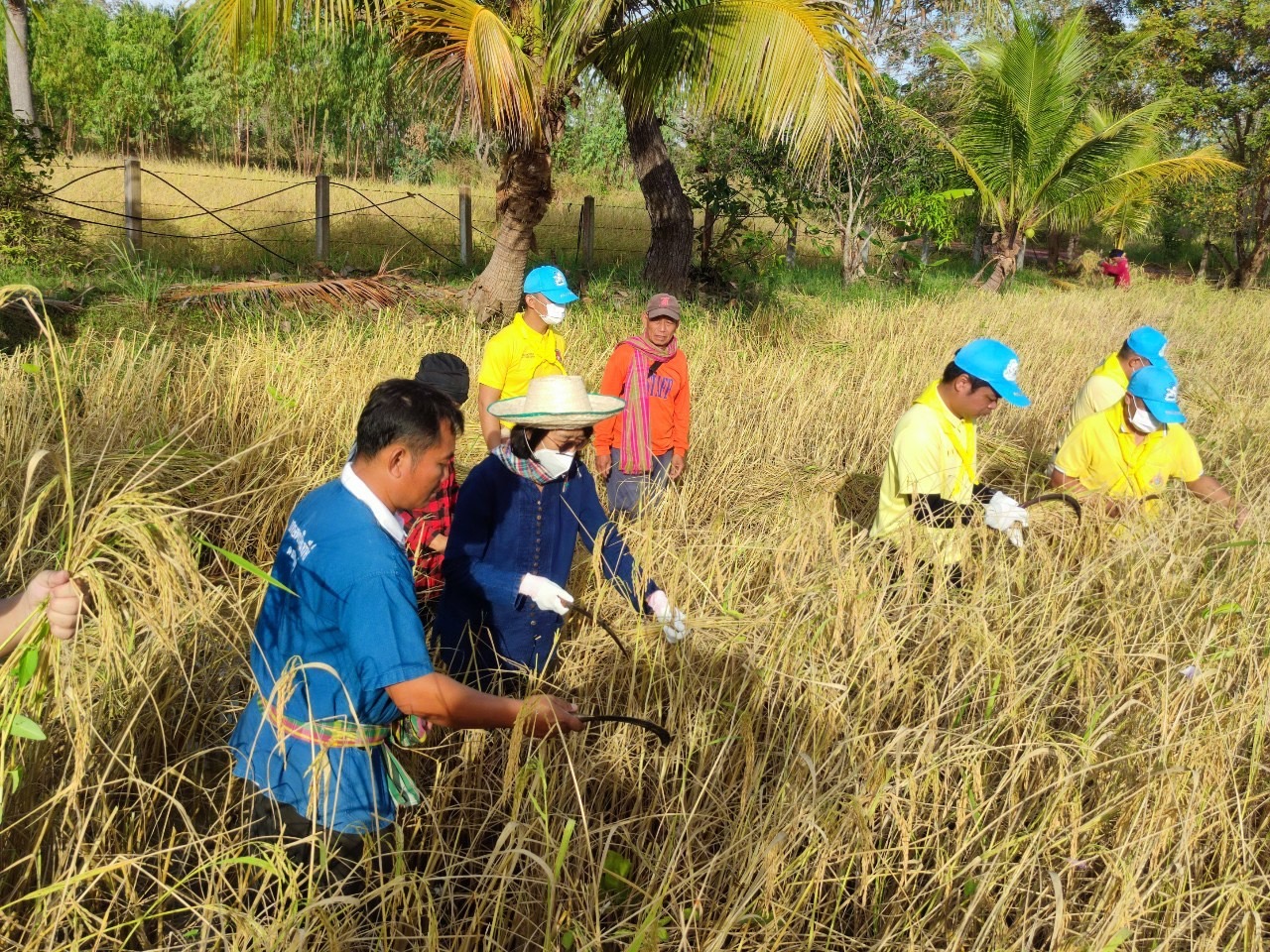 วันเสาร์ที่ 19 พฤศจิกายน 2565 ลงพื้นที่ลงแขกเกี่ยวข้าว เพื่อเป็นการส่งเสริมและสนับสนุนการทำเกษตรอินทรีย์ในพื้นที่อำเภอคำเขื่อนแก้ว จำนวน 2 แปลง