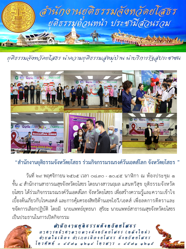 สำนักงานยุติธรรมจังหวัดยโสธร ร่วมกิจกรรมรณรงค์วันเอดส์โลก จังหวัดยโสธร