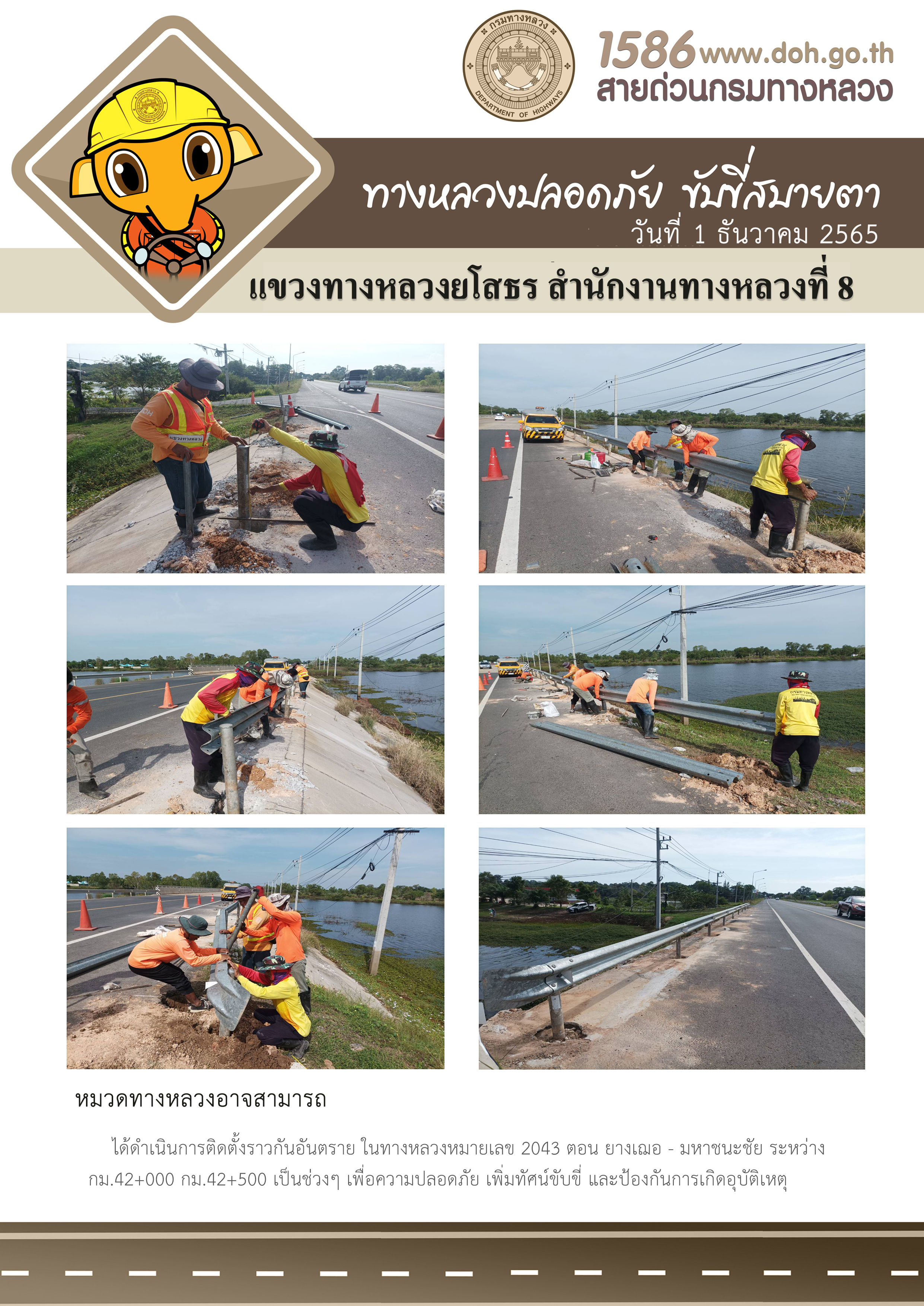 วันที่ 1 ธันวาคม 2565 หมวดทางหลวงอาจสามารถ ได้ดำเนินการติดตั้งราวกันอันตราย ในทางหลวงหมายเลข 2043 ตอน ยางเฌอ - มหาชนะชัย ระหว่าง กม.42+000 - กม.42+500 เป็นช่วงๆ เพื่อความปลอดภัย เพิ่มทัศนวิสัยในการขับขี่ และป้องกันการเกิดอุบัติเหตุ