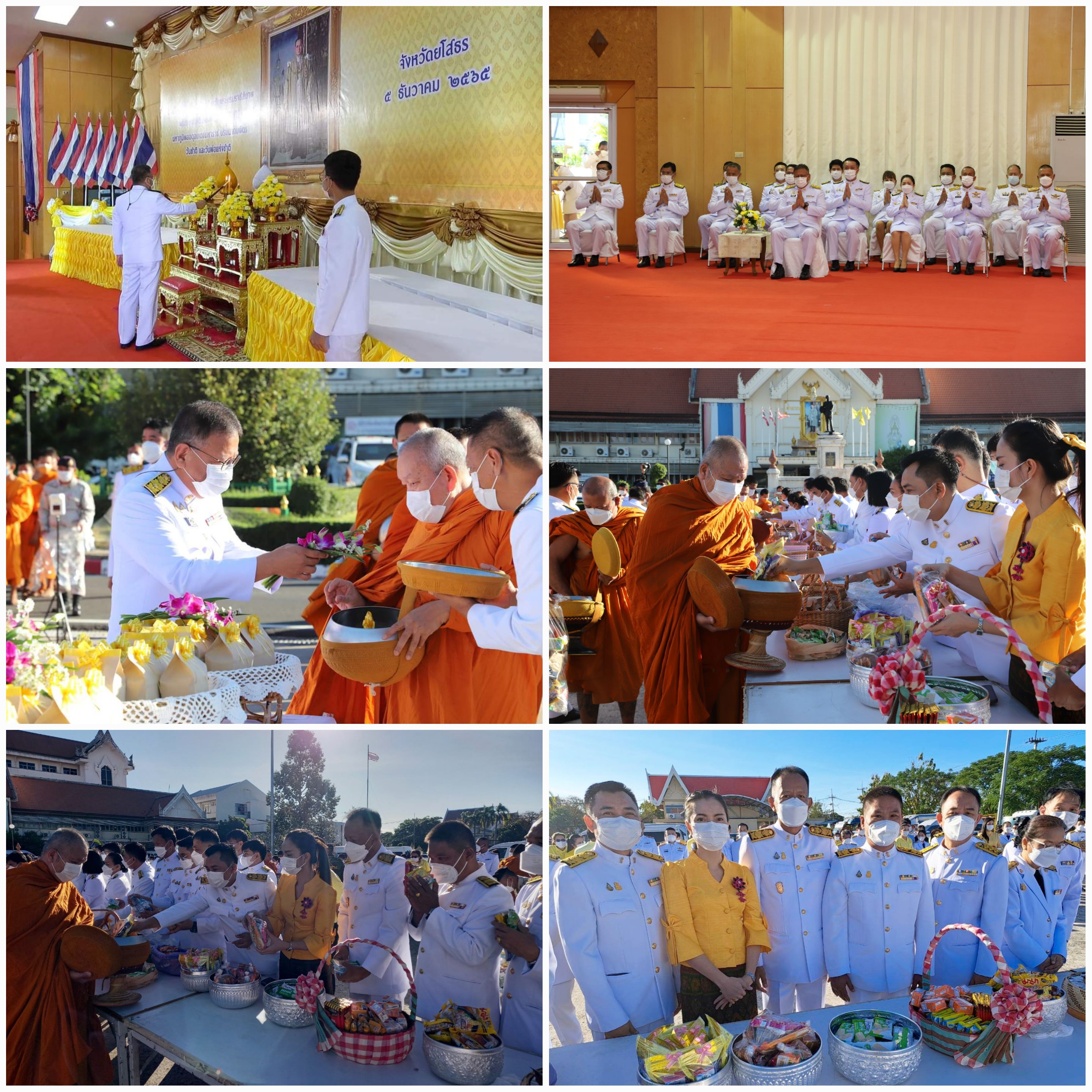 สำนักงานคุมประพฤติจังหวัดยโสธร ร่วมพิธีทำบุญตักบาตรพระสงฆ์ ๘๙ รูป ถวายเป็นพระราชกุศล เนื่องในวันคล้ายวันพระบรมราชสมภพ พระบาทสมเด็จพระบรมชนกาธิเบศร มหาภูมิพลอดุลยเดชมหาราช บรมนาถบพิตร วันชาติ และวันพ่อแห่งชาติ ๕ ธันวาคม ๒๕๖๕