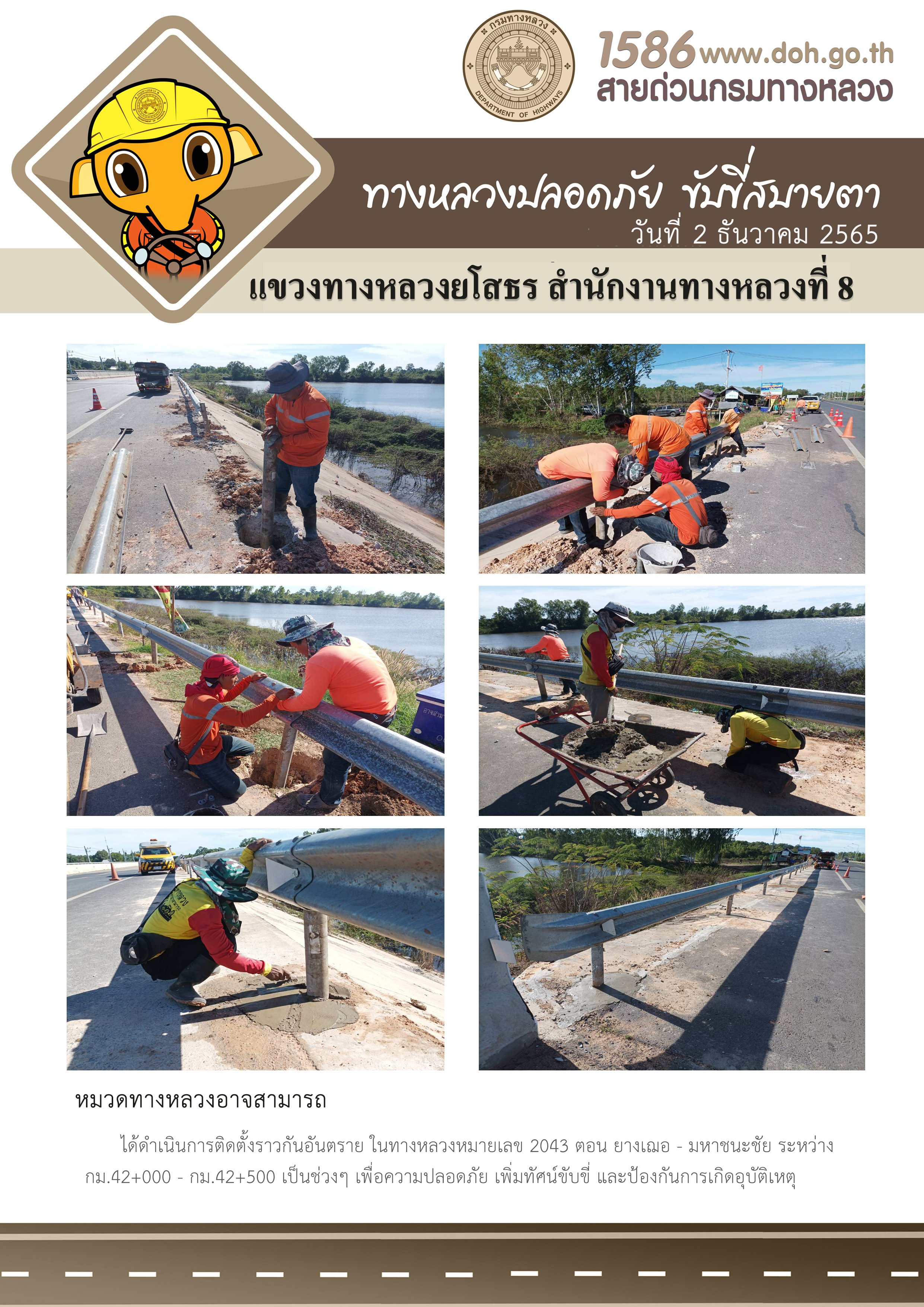 วันที่ 2 ธันวาคม 2565 หมวดทางหลวงอาจสามารถ ได้ดำเนินการติดตั้งราวกันอันตราย ในทางหลวงหมายเลข 2043 ตอน ยางเฌอ - มหาชนะชัย ระหว่าง กม.42+000 - กม.42+500 เป็นช่วงๆ เพื่อความปลอดภัย เพิ่มทัศนวิสัยในการขับขี่ และป้องกันการเกิดอุบัติเหตุ