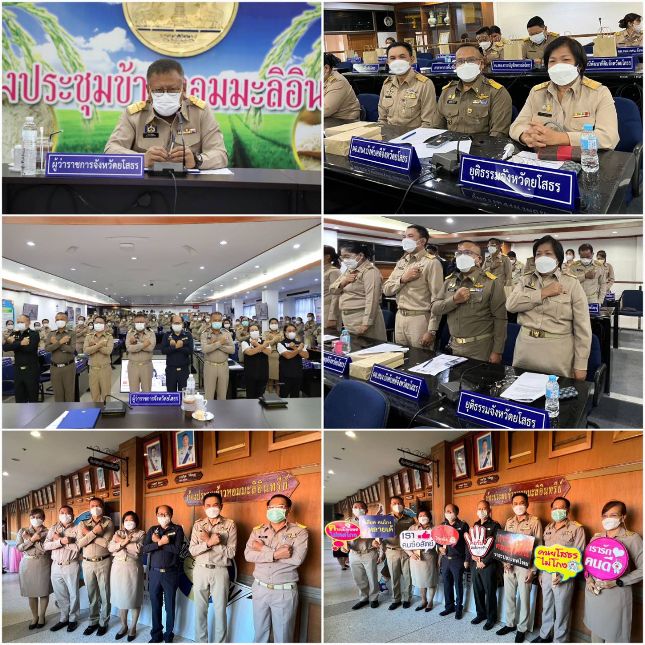 วันที่ 9 ธ.ค. 2565 (17:44 น.)กรมคุมประพฤติ กระทรวงยุติธรรม โดยสำนักงานคุมประพฤติจังหวัดยโสธร วันศุกร์ที่ ๙ ธันวาคม ๒๕๖๕ เวลา ๐๘.๓๐ นาฬิกา นางสาวนฤมล แสนทวีสุข ผู้อำนวยการสำนักงานคุมประพฤติจังหวัดยโสธรและยุติธรรมจังหวัดยโสธร พร้อมด้วยนายชัยสิทธิ์ เครือสูงเนิน พนักงานคุมประพฤติชำนาญการพิเศษ หัวหน้ากลุ่มยุทธศาสตร์และอำนวยการ และหัวหน้าหน่วยงานในสังกัดกระทรวงยุติธรรม ร่วมงานวันต่อต้านคอร์รัปชันสากล (ประเทศไทย) ภายใต้แนวคิด “Zero Tolerance คนไทยไม่ทนต่อการทุจริต” เพื่อแสดงเจตจำนงทางการเมืองที่รัฐบาลได้ให้ความสำคัญในการแก้ไขปัญหาการทุจริตเป็นวาระเร่งด่วน ด้วยการใช้กลไกประสานความร่วมมือกับภาครัฐทั้งฝ่ายประจำและฝ่ายการเมือง ภาครัฐวิสาหกิจ เอกชน ภาคประชาสังคม ซึ่งเป็นรากฐานสำคัญในการแก้ไขปัญหาการทุจริตที่ยั่งยืน และส่งผลต่อการยกระดับค่าดัชนีการรับรู้การทุจริต (CPI) สูงขึ้นด้วย โดยมีนายวิรุจ วิชัยบุญ ผู้ว่าราชการจังหวัดยโสธร เป็นประธาน และมีนายสุวัฒน์ เข็มเพชร รองผู้ว่าราชการจังหวัดยโสธร หัวหน้าส่วนราชการ เข้าร่วมงาน ณ ห้องประชุมข้าวหอมมะลิอินทรีย์ (ชั้น ๓) ศาลากลางจังหวัดยโสธร