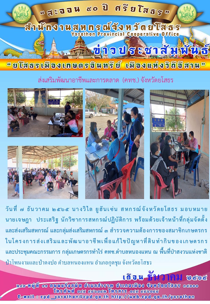 ผู้โพสต์ : [สำนักงานสหกรณ์จังหวัดยโสธร] ทั่วไป