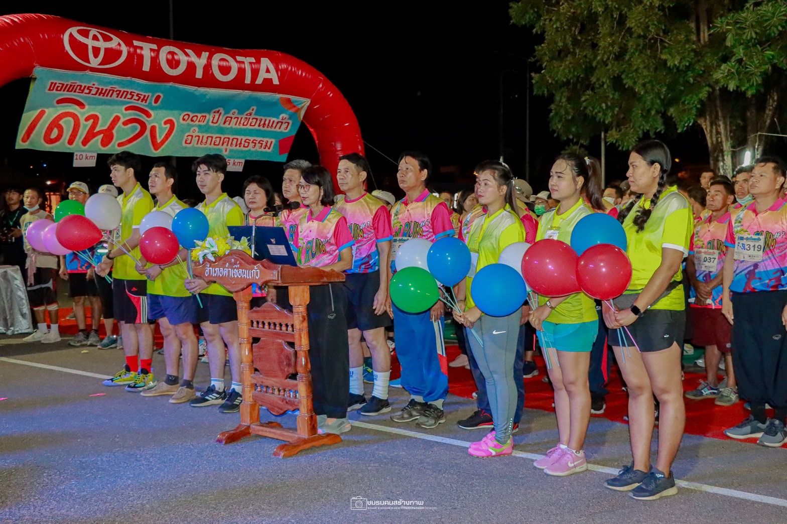 วันที่ 19 ธ.ค. 2565 (09:49 น.)วันเสาร์ที่ 17 ธันวาคม 2565 เวลา 05.30 น. นายวิรุจ วิชัยบุญ ผู้ว่าราชการจังหวัดยโสธร มอบหมายให้ นายสุวัฒน์ เข็มเพชร รองผู้ว่าราชการจังหวัดยโสธร เป็นประธานในพิธีเปิดกิจกรรมโครงการ “เดิน วิ่ง 113 ปี คำเขื่อนแก้ว อำเภอคุณธรรม” ครั้งที่ 1 ณ บริเวณหน้าที่ว่าการอำเภอคำเขื่อนแก้ว จังหวัดยโสธร โดยมีนางยุพิน ภัทรกุลพงศ์ นายอำเภอคำเขื่อนแก้ว กล่าวรายงานวัตถุประสงค์และความเป็นมาของโครงการ เพื่อส่งเสริมสนับสนุนให้ประชาชนได้ออกกำลังกายเพื่อให้มีสุขภาพแข็งแรง และเพื่อจัดหารายได้สำหรับการพัฒนาคุณภาพชีวิตชาวอำเภอคำเขื่อนแก้ว ทั้งนี้ มีหัวหน้าส่วนราชการระดับจังหวัด/อำเภอ ผู้บริหารองค์กรปกครองส่วนท้องถิ่น ผู้บริหารสถานศึกษา ผู้อำนวยการโรงพยาบาลส่งเสริมสุขภาพตำบล ตลอดจนบุคลากรในสังกัด และกำนัน ผู้ใหญ่บ้าน ฯลฯ รวมทั้งประชาชนทั่วไปสมัครเข้าร่วมกิจกรรมในครั้งนี้ จำนวน 1,654 คน ในการนี้ กิจกรรมดังกล่าวได้รับความเมตตาจากคณะสงฆ์อำเภอคำเขื่อนแก้วและได้รับการสนับสนุนงบประมาณ วัสดุอุปกรณ์ บุคลากร อาหาร และน้ำดื่มสำหรับให้บริการนักวิ่งที่เข้าร่วมกิจกรรมจากที่ทำการปกครองอำเภอคำเขื่อนแก้ว ชมรมแม่บ้านมหาดไทยอำเภอคำเขื่อนแก้ว ตลอดจนหน่วยงานภาครัฐ ภาคเอกชน และภาคประชาชนที่ให้การสนับสนุนการจัดกิจกรรมในครั้งนี้