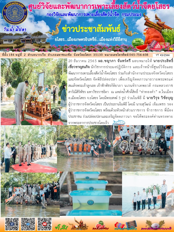 ผู้โพสต์ : [ศูนย์วิจัยและพัฒนาการเพาะเลี้ยงสัตว์น้ำจืดยโสธร] ทั่วไป