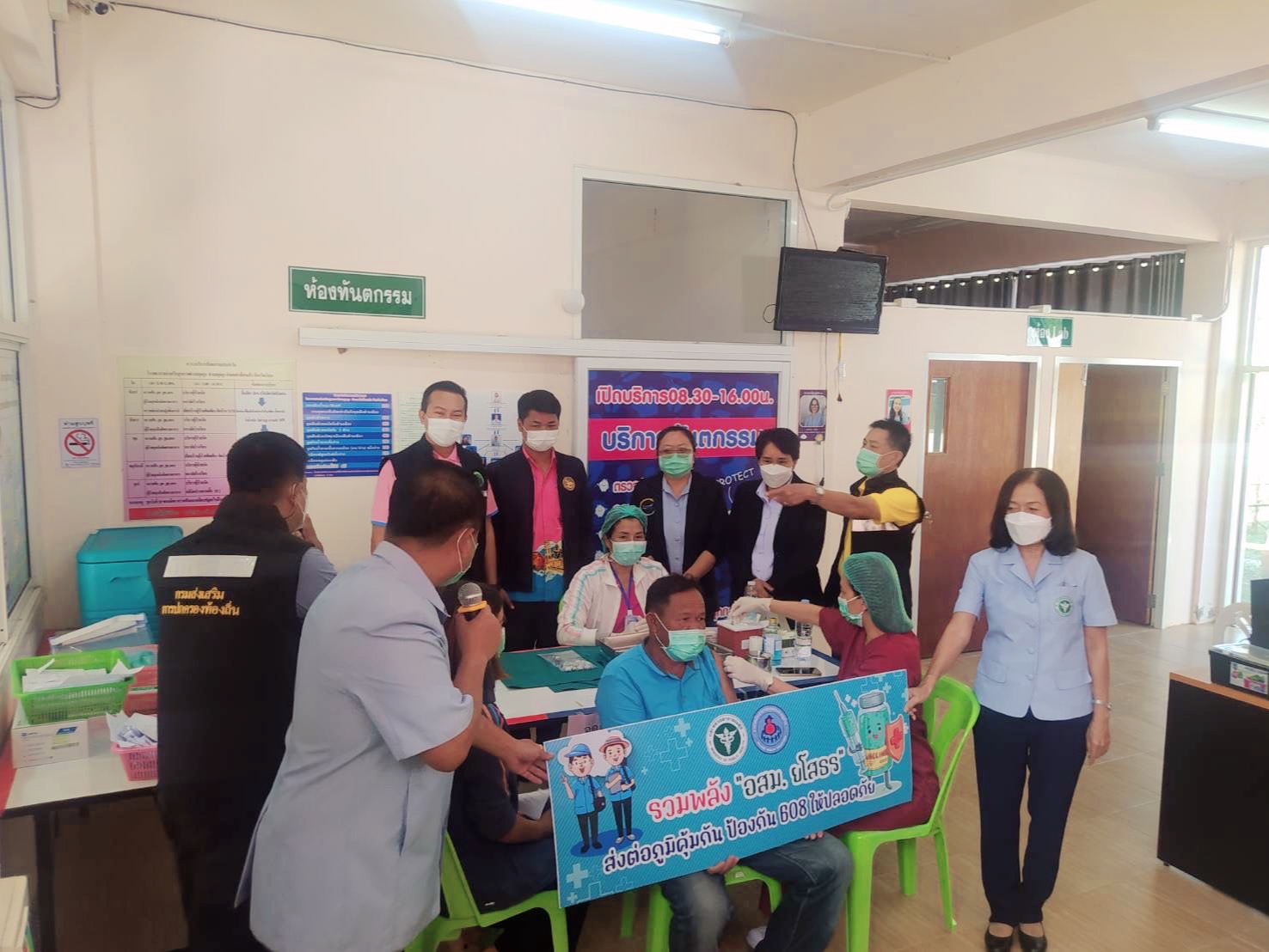 วันที่ 22 ธ.ค. 2565 (09:38 น.)วันที่ 20 ธันวาคม 2565 เวลา 11.30 น. นางยุพิน ภัทรกุลพงศ์ นายอำเภอคำเขื่อนแก้ว มอบหมายให้นายอนุวัฒน์ ผิวผ่อง ปลัดอำเภอ เป็นผู้แทนให้การต้อนรับ นายแพทย์ยุทธนา สุริยะ นายแพทย์สาธารณสุขจังหวัดยโสธร ในโอกาสลงพื้นที่ตรวจเยี่ยมศูนย์บริการฉีดวัคซีนเข็มกระตุ้นป้องกันโรคโควิด-19 ณ โรงพยาบาลส่งเสริมสุขภาพตำบลกุดกุง ต.กุดกุง อ.คำเขื่อนแก้ว จ.ยโสธร โดยมีสาธารณสุขอำเภอคำเขื่อนแก้ว ผู้อำนวยการโรงพยาบาลคำเขื่อนแก้ว นายกองค์การบริหารส่วนตำบลกุดกุง ผู้อำนวยการและบุคลากรโรงพยาบาลส่งเสริมสุขภาพตำบลกุดกุง ผู้ใหญ่บ้านในพื้นที่ตำบลกุดกุง และอสม.ตำบลกุดกุงร่วมให้การต้อนรับ ทั้งนี้ มีประชาชนมารับบริการฉีดวัคซีนเข็มกระตุ้นป้องกันโรคโควิด-19 จำนวน 150 คน