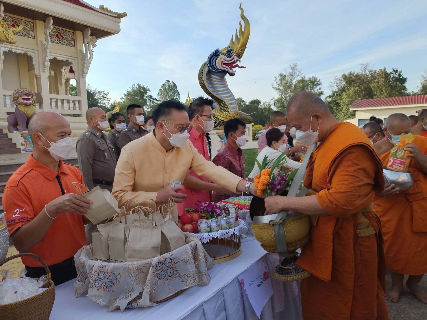 พร้อมด้วยข้าราชการสำนักงานส่งเสริมการปกครองท้องถิ่นจังหวัดยโสธร ร่วมพิธีทำบุญตักบาตรถวาย