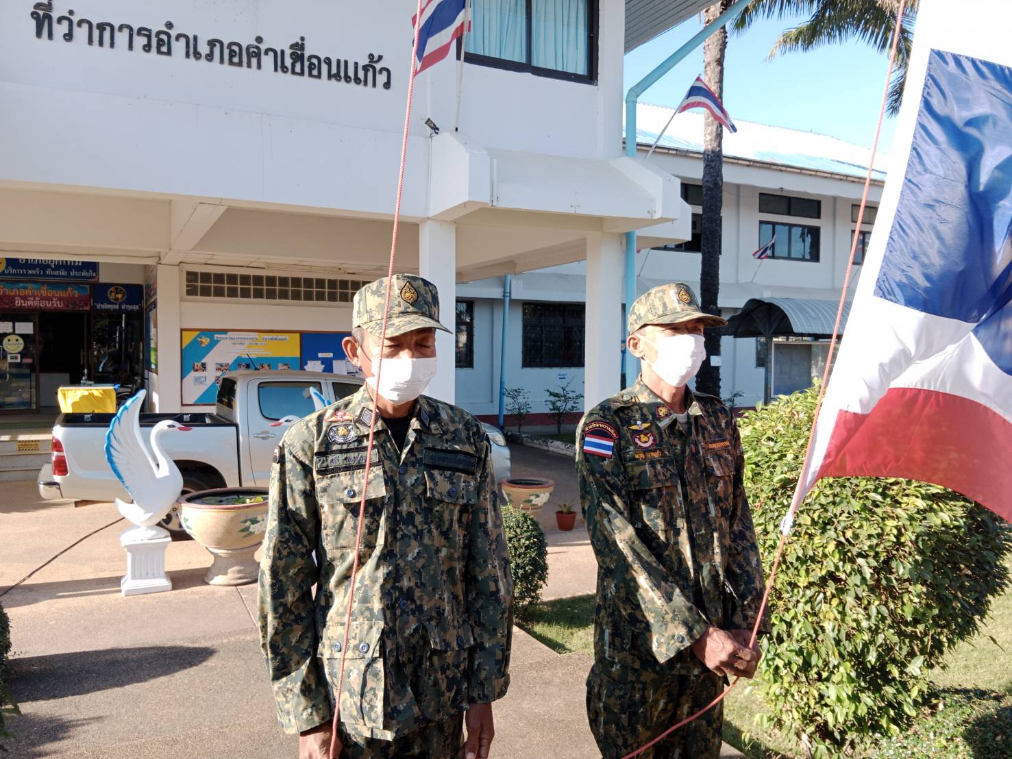 วันที่ ๒๘ ธันวาคม ๒๕๖๕ ร่วมกิจกรรมเคารพธงชาติและร้องเพลงชาติไทย ณ บริเวณหน้าที่ว่าการอำเภอคำเขื่อนแก้ว
