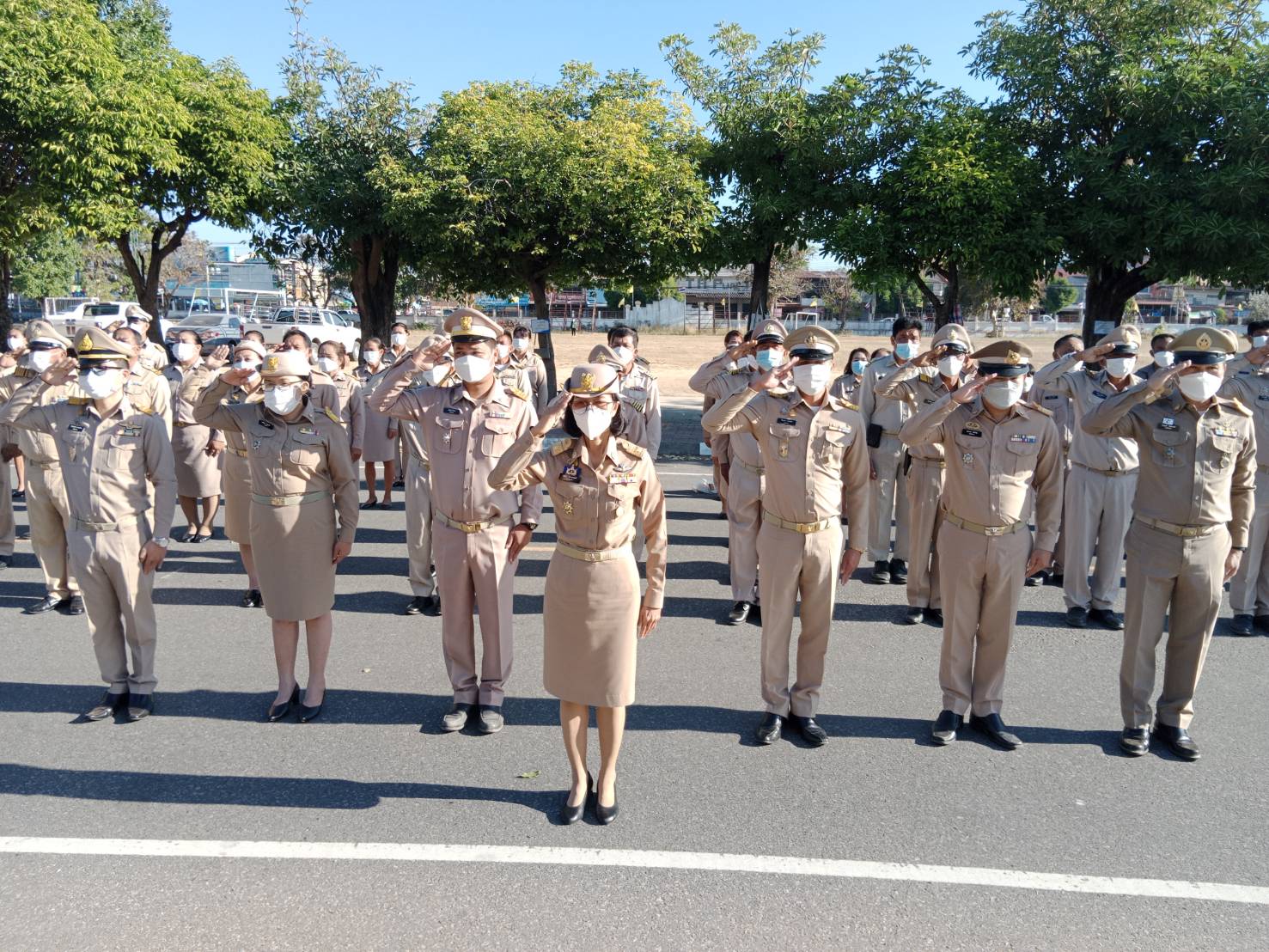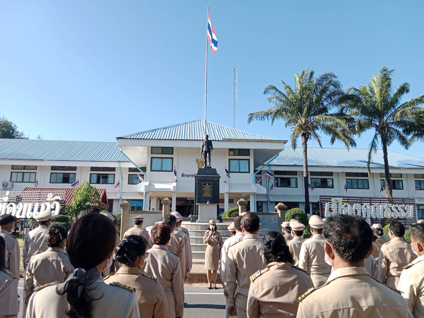วันที่ 29 ธ.ค. 2565 (15:38 น.)วันที่ ๒๘ ธันวาคม ๒๕๖๕ เวลา ๐๘.๓๐ น. นางยุพิน ภัทรกุลพงศ์ นายอำเภอคำเขื่อนแก้ว นำปลัดอำเภอ สมาชิก อส. ร้อย.อส.อ.คำเขื่อนแก้ว ๕ พนักงาน ลูกจ้าง กำนัน ผู้ใหญ่บ้าน แพทย์ประจำตำบลสารวัตรกำนัน และผู้ช่วยผู้ใหญ่บ้าน ร่วมกิจกรรมเคารพธงชาติและร้องเพลงชาติไทย ณ บริเวณหน้าที่ว่าการอำเภอคำเขื่อนแก้ว ในการนี้ ได้พบปะและให้โอวาทแก่ข้าราชการ กำนัน ผู้ใหญ่บ้าน ฯลฯ และผู้เข้าร่วมกิจกรรมในครั้งนี้ด้วย