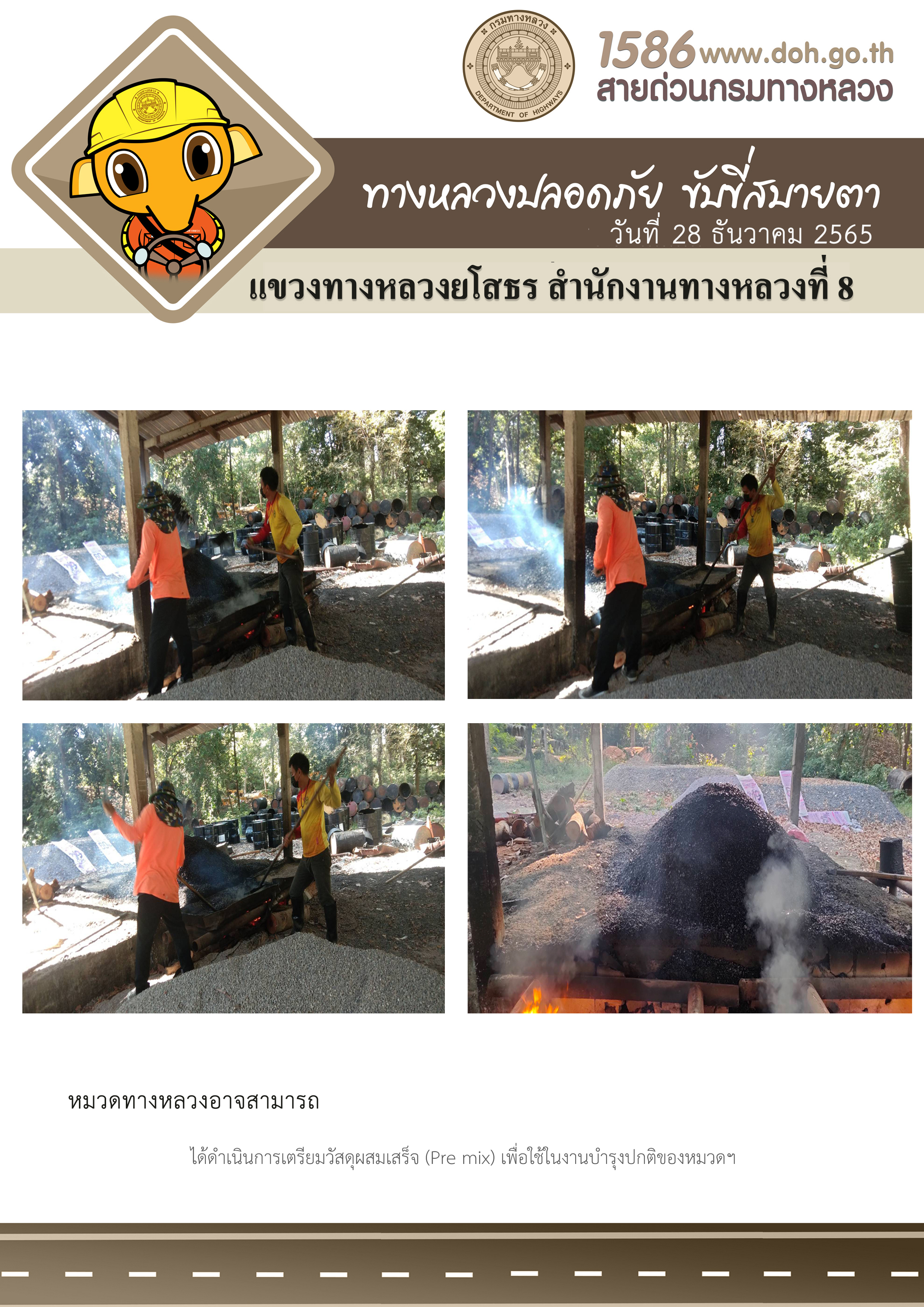 วันที่ 28 ธันวาคม 2565 หมวดทางหลวงอาจสามารถ ได้ดำเนินการเตรียมวัสดุผสมเสร็จ (Pre mix) เพื่อใช้ในงานบำรุงปกติของหมวดฯ